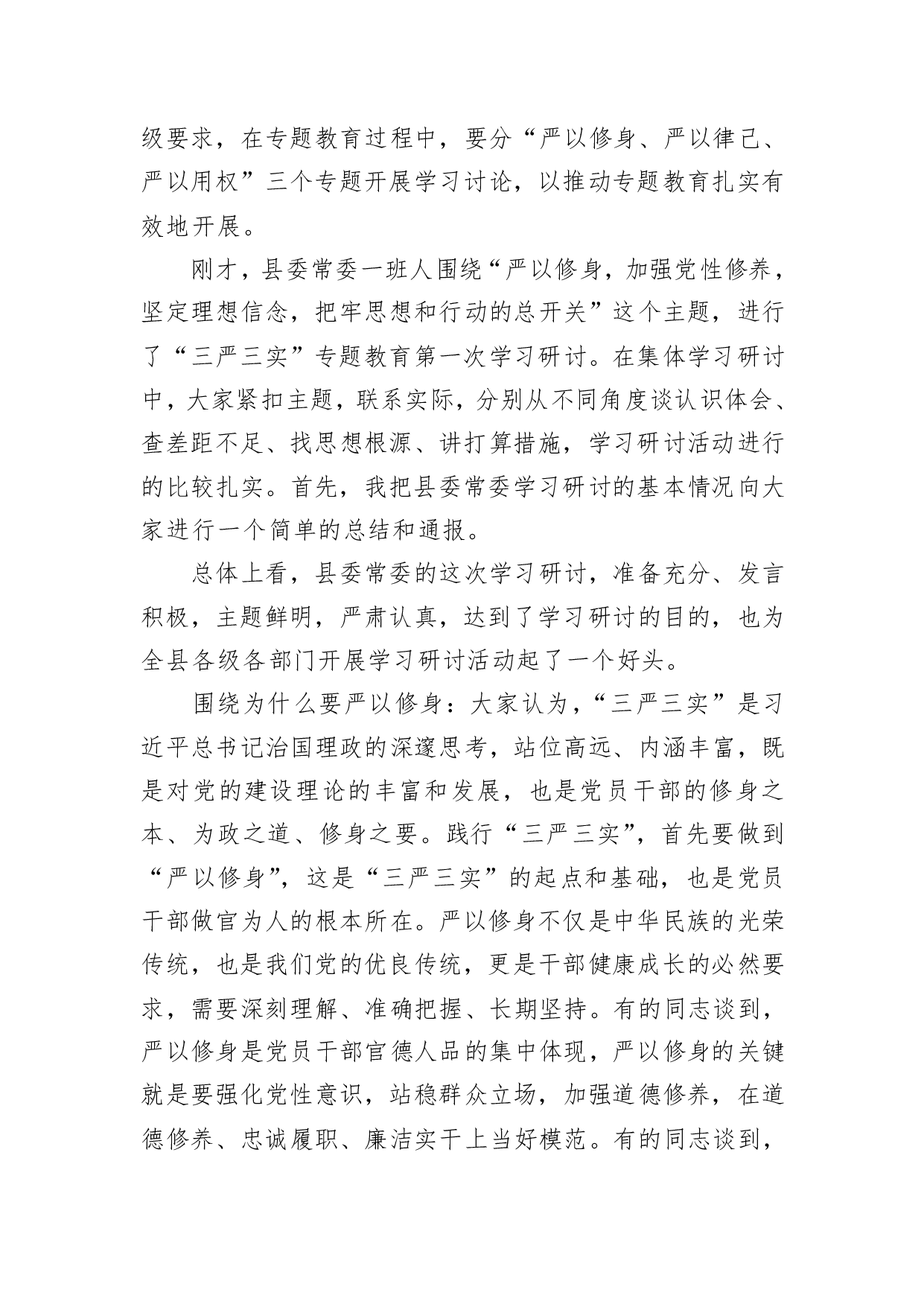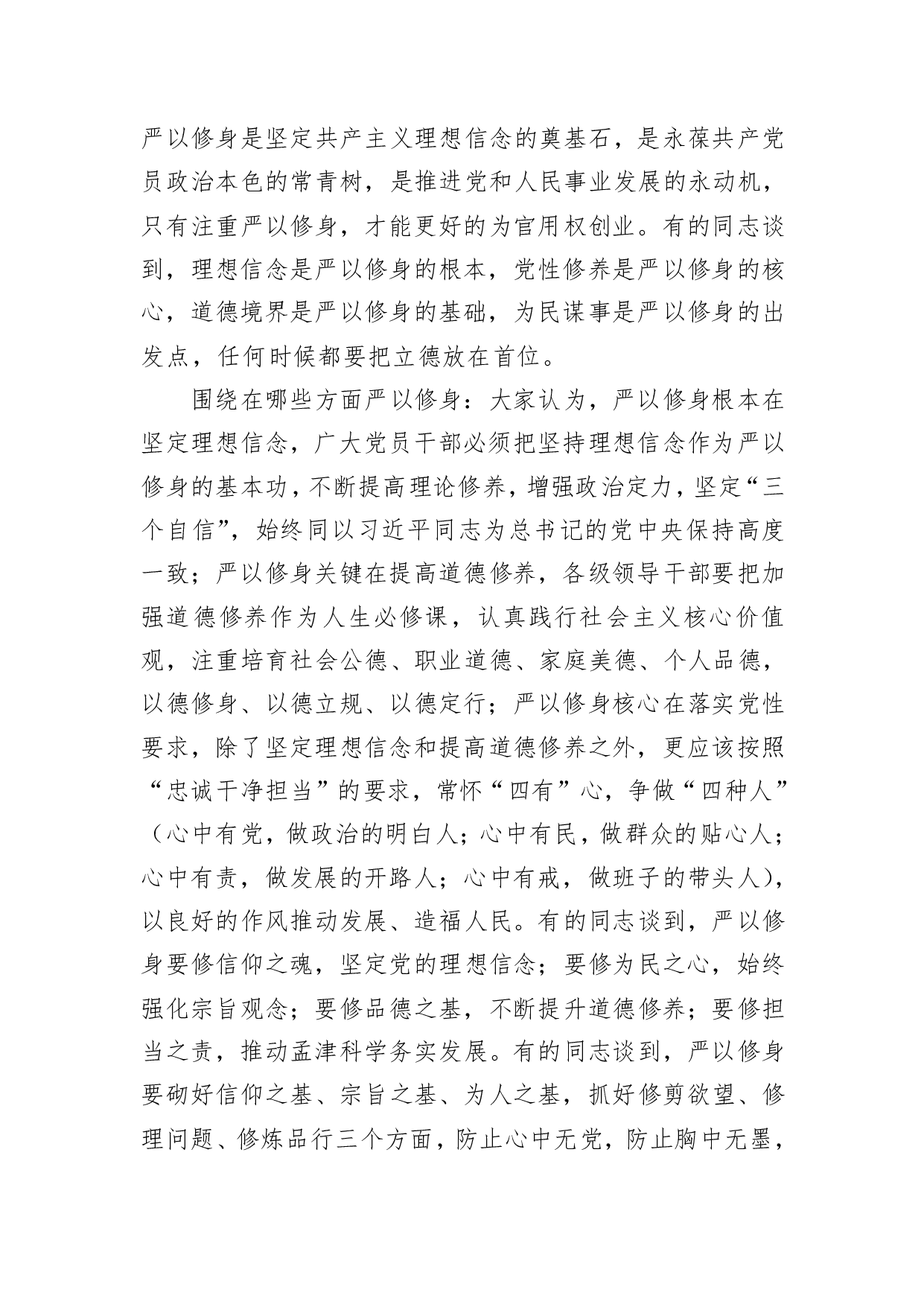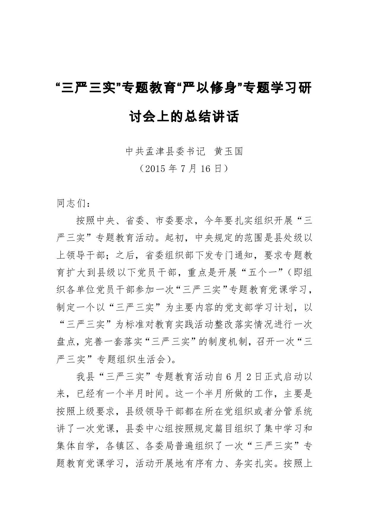 标题:黄玉国:“三严三实”专题教育“严以修身”专题学习研讨会上的总结讲话