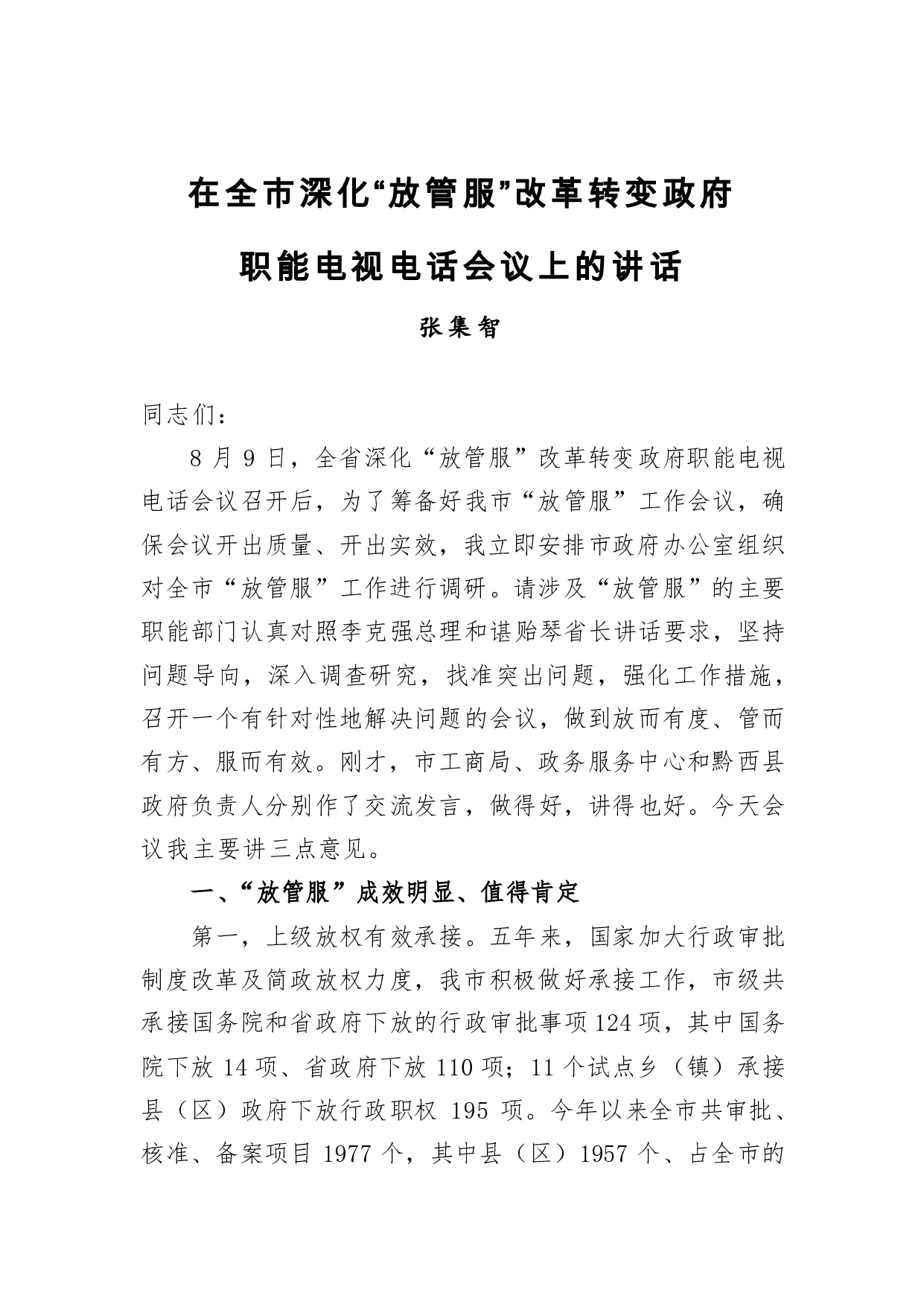 标题:张集智:在全市深化“放管服”改革转变政府职能电视电话会议上的讲话 (1)