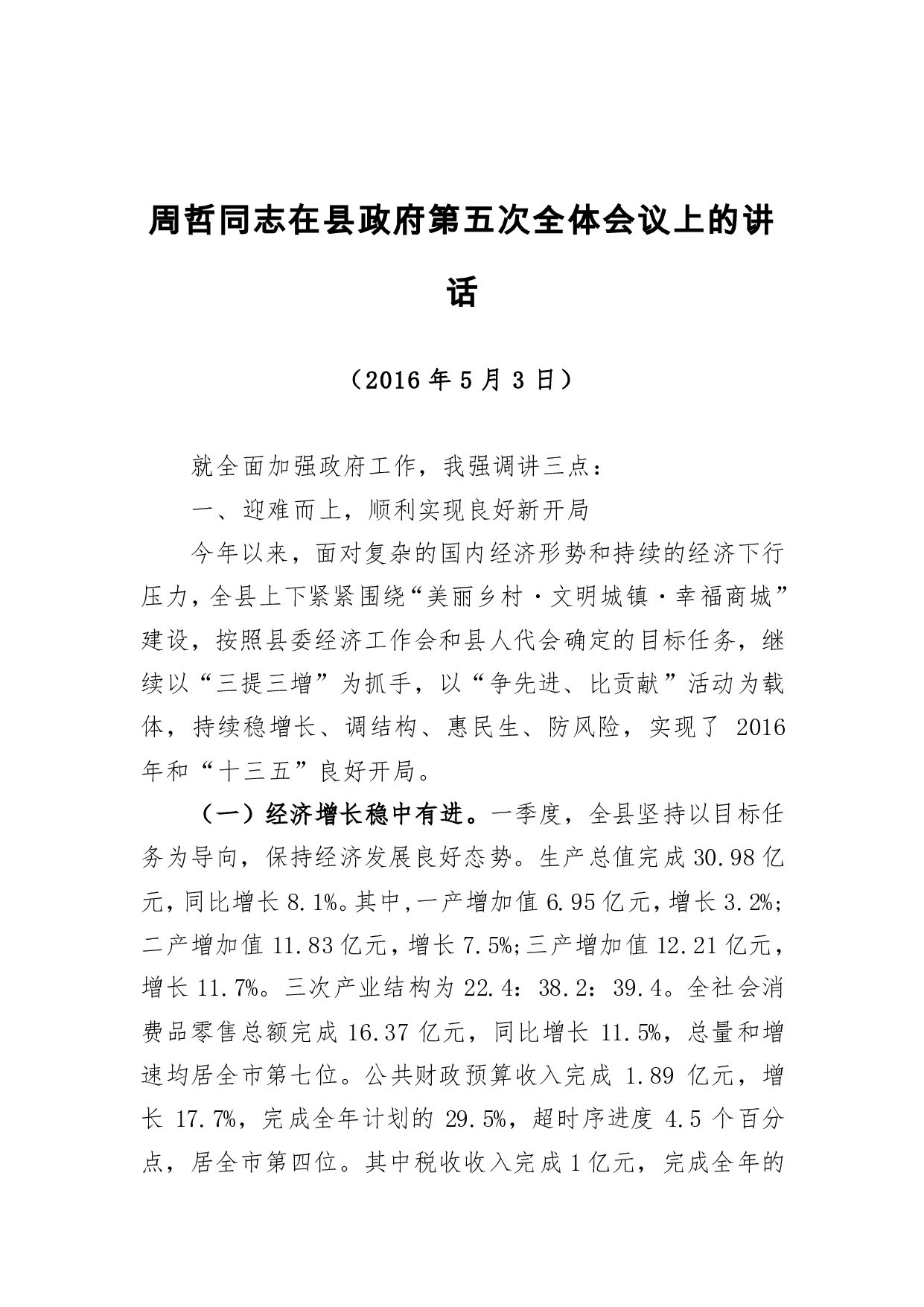 标题:周哲同志:在县政府第五次全体会议上的讲话
