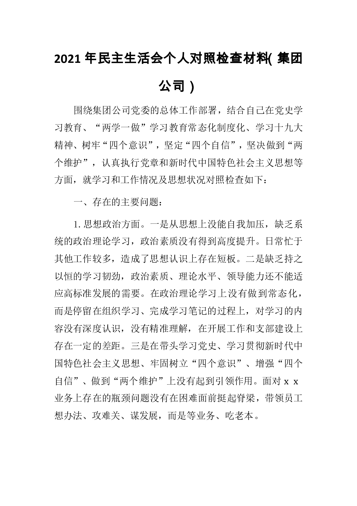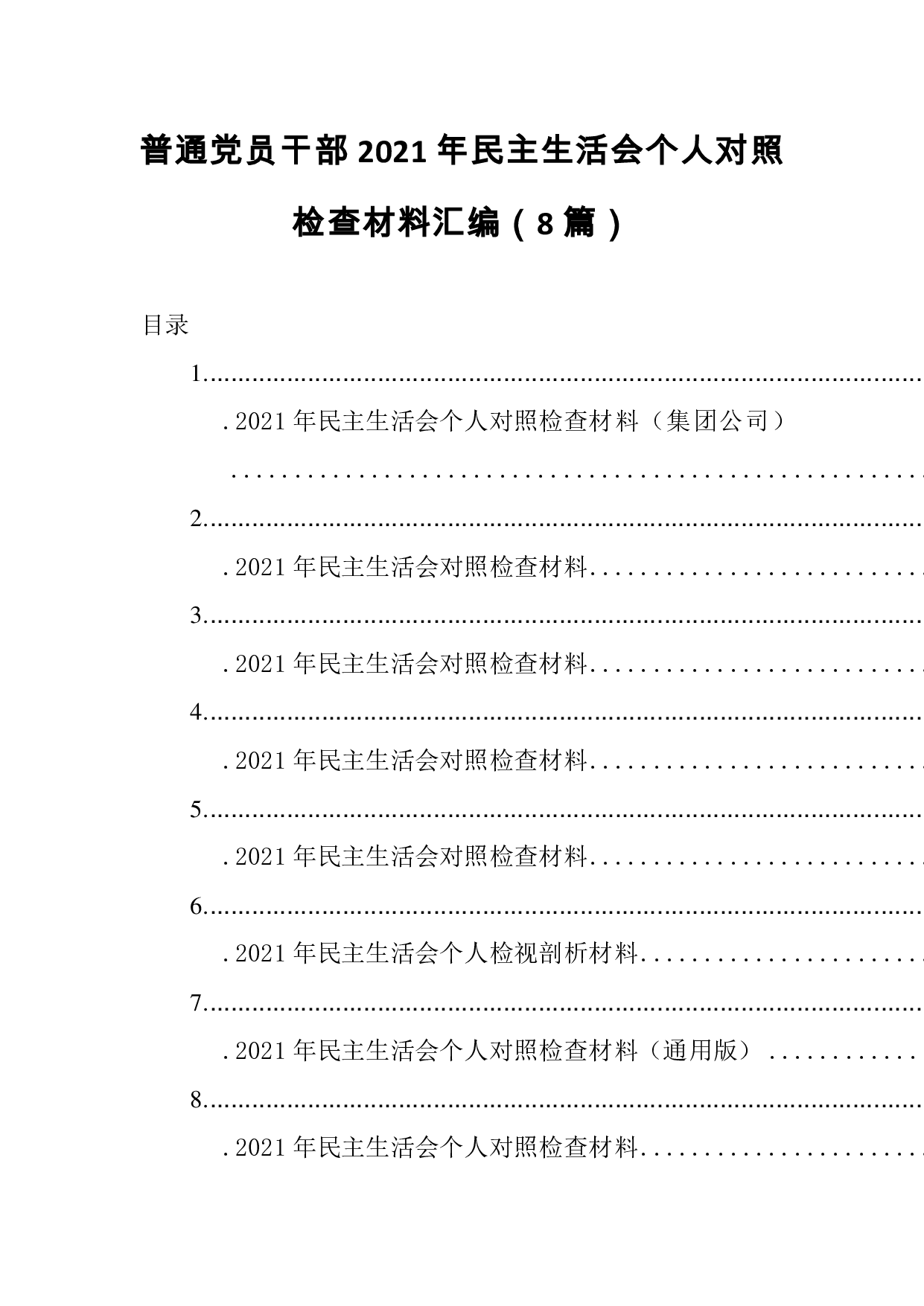 标题:普通党员干部2021年民主生活会个人对照检查材料汇编(8篇)