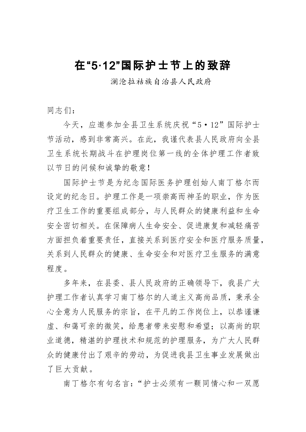 标题:中共澜沧县委副书记石春云:在“5·12”国际护士节上的致辞
