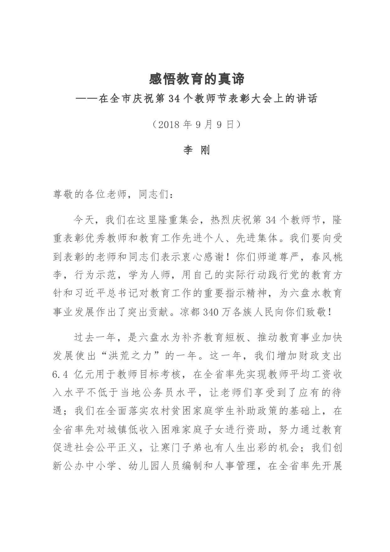 标题:李刚市长在全市庆祝第34个教师节表彰大会上的讲话 (1)