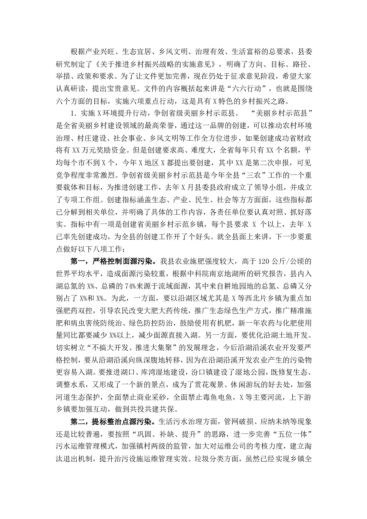 标题:在全县乡村振兴工作推进大会上的讲话
