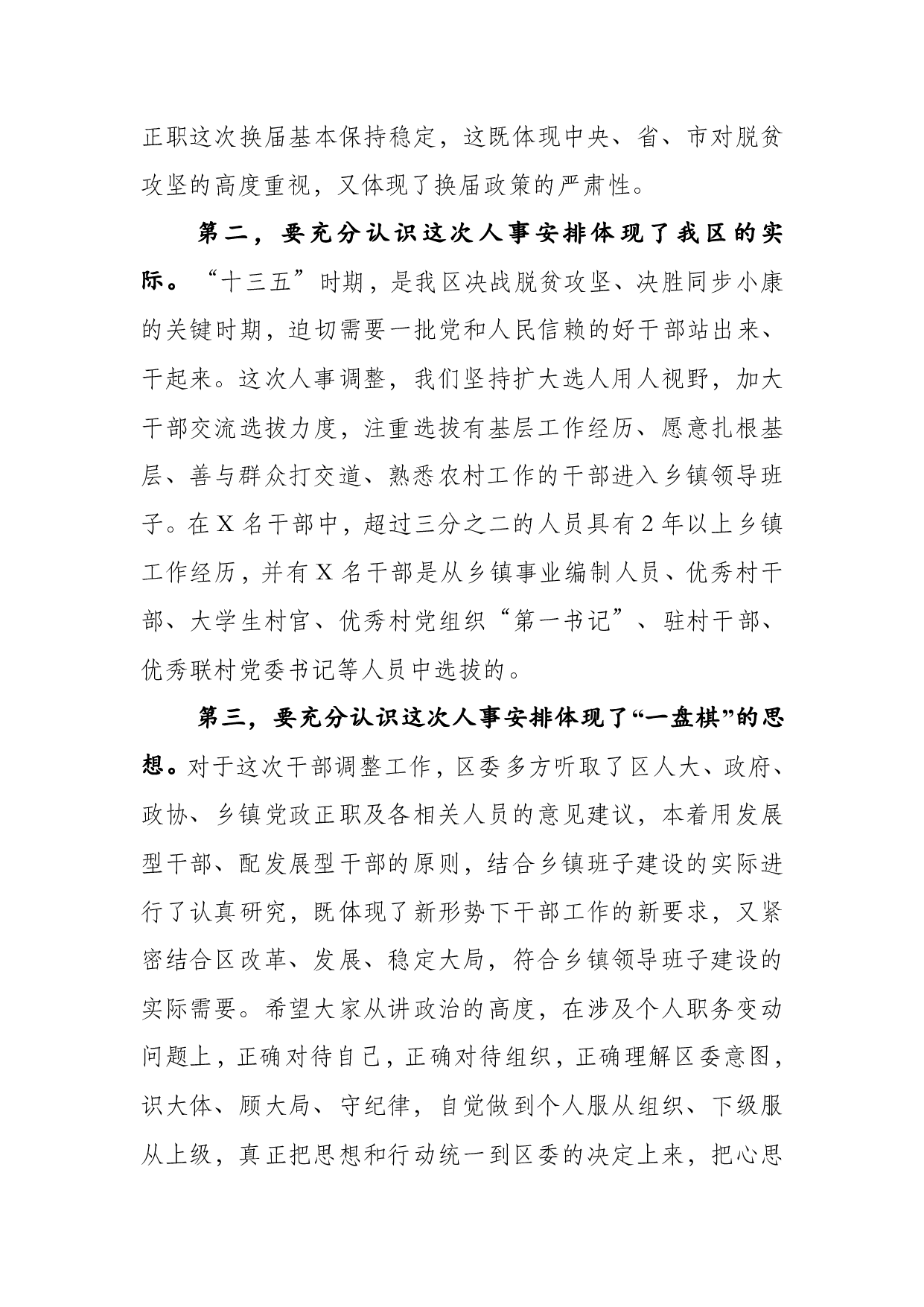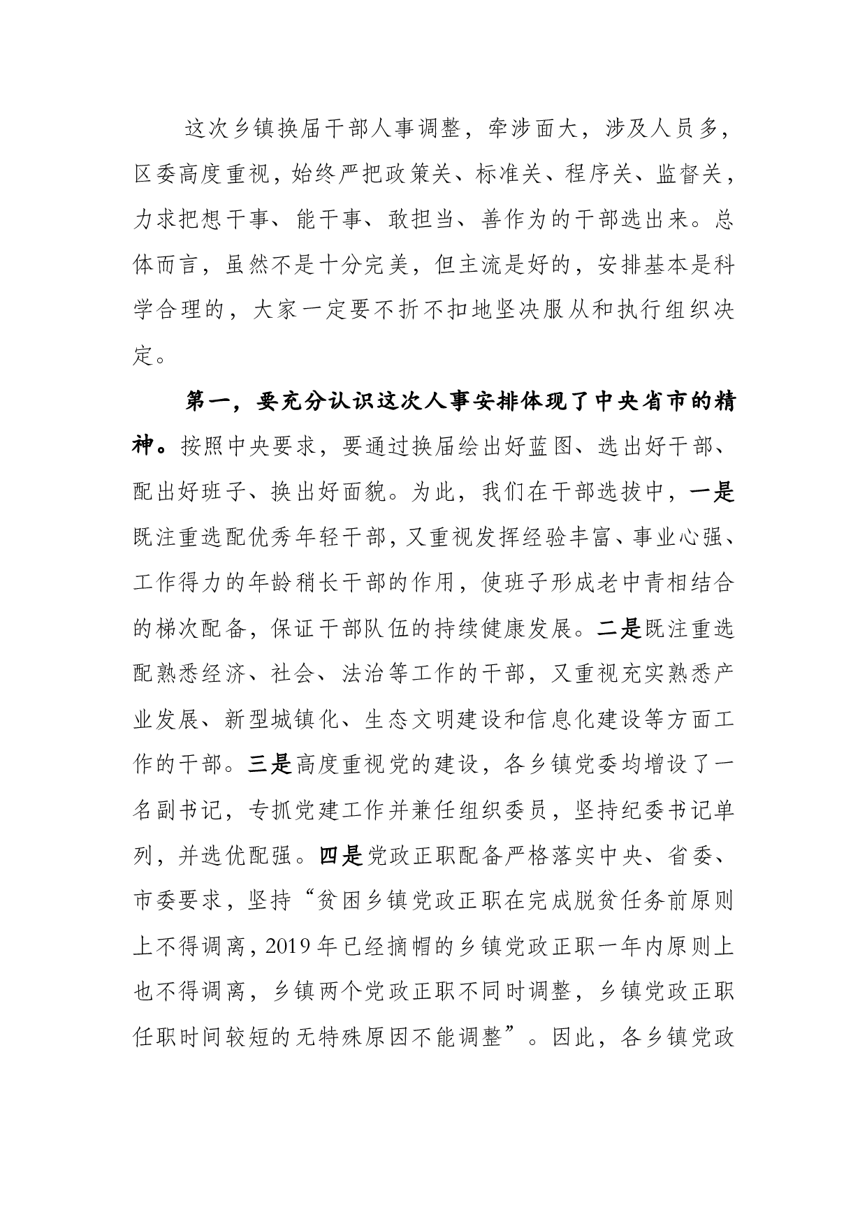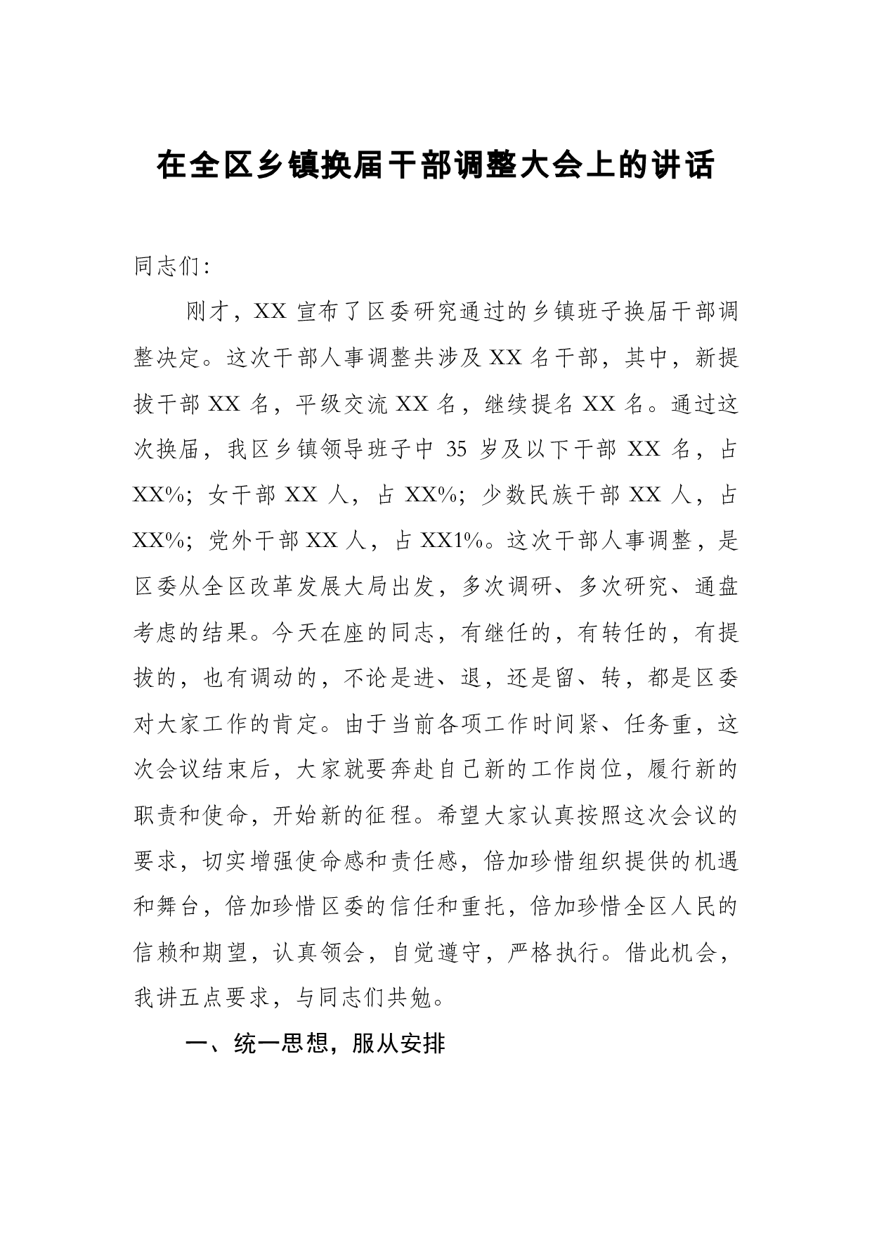 标题:在全区乡镇换届干部调整大会上的讲话