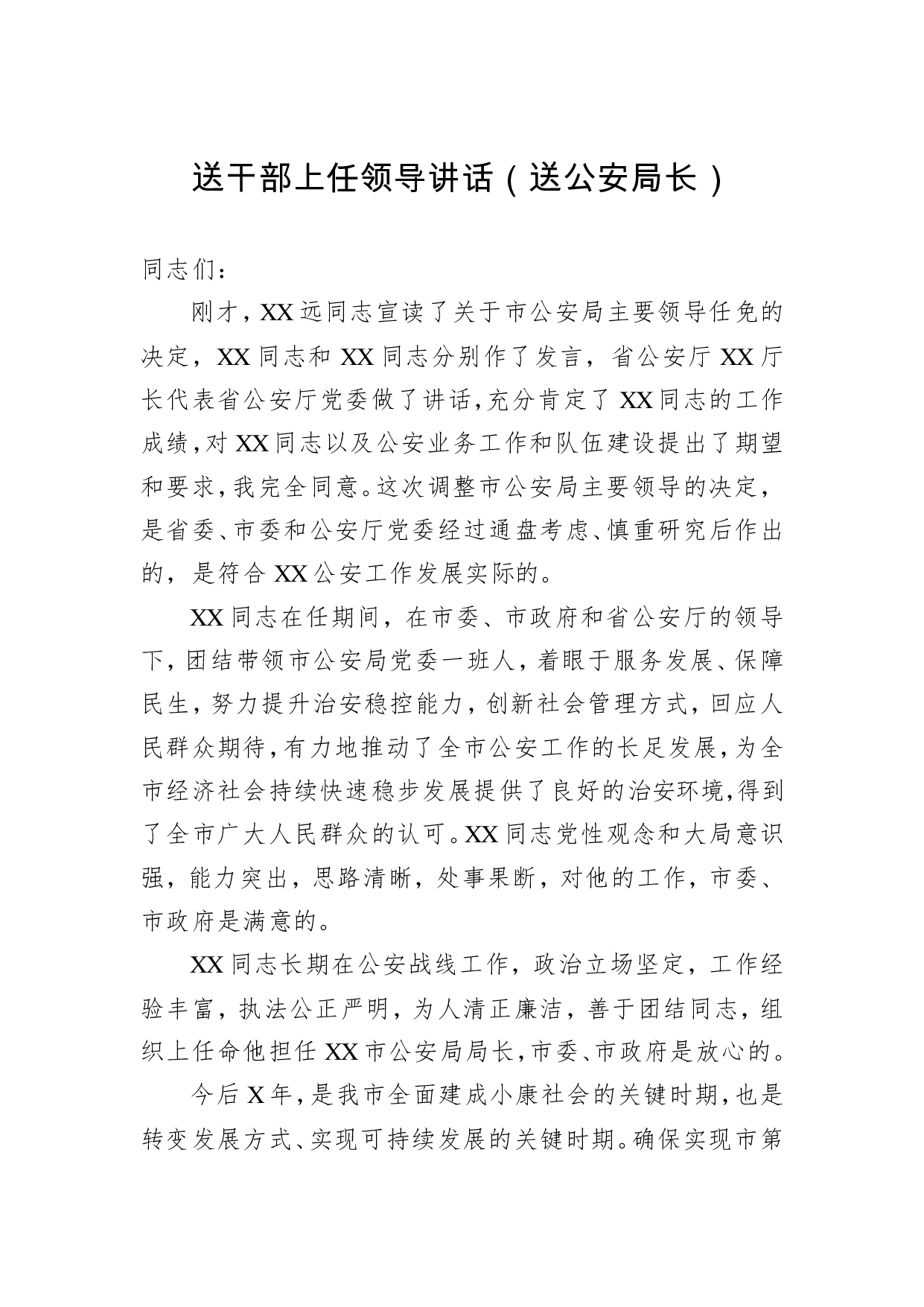 标题:送干部上任领导讲话4篇
