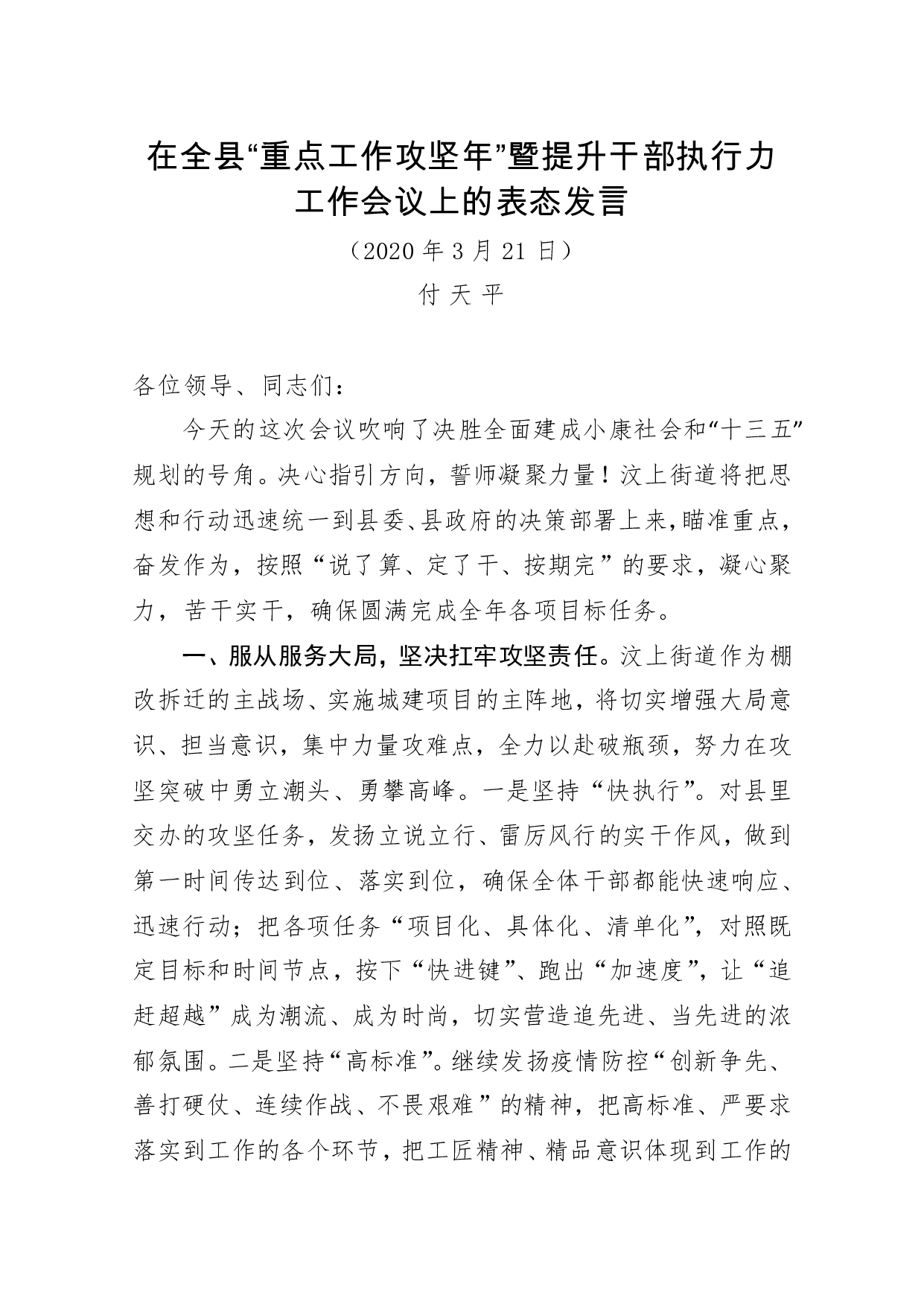 标题:在全县“重点工作攻坚年”暨提升干部执行力工作会议上的表态发言