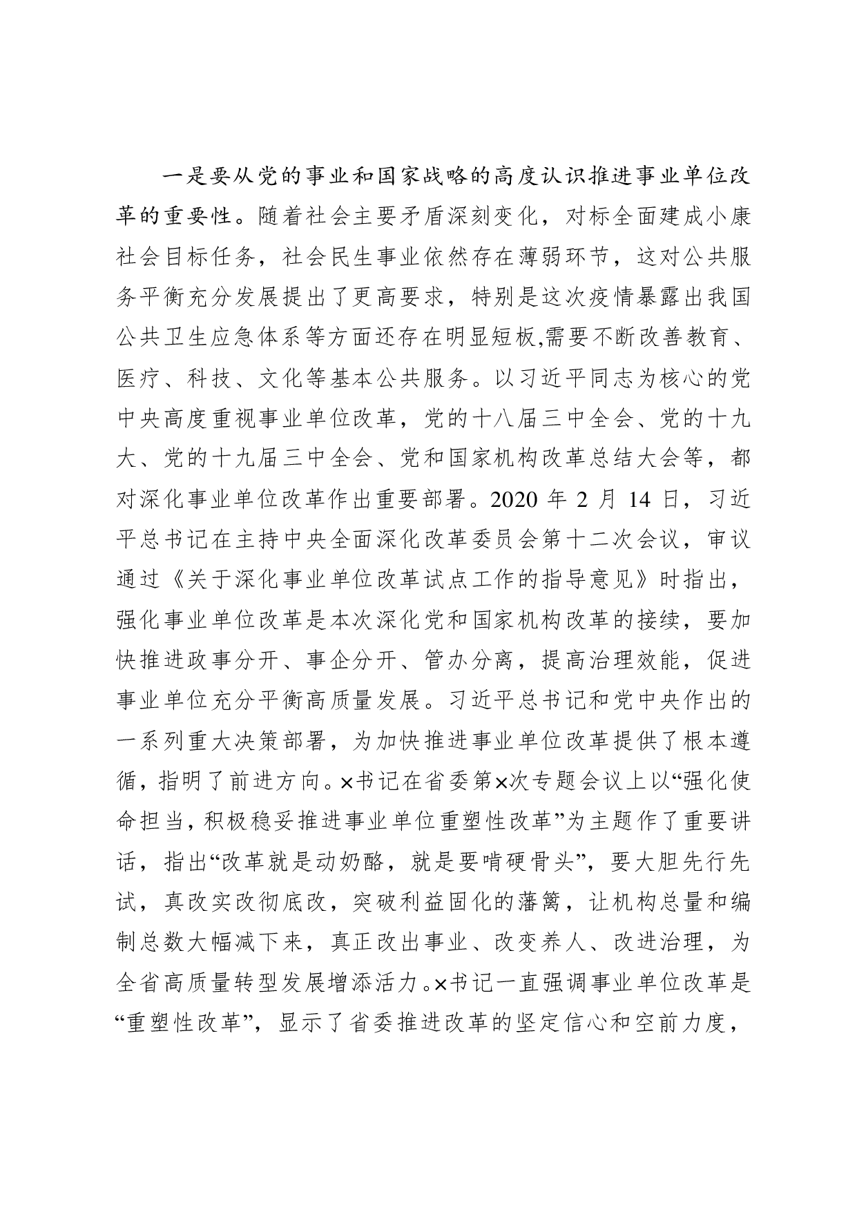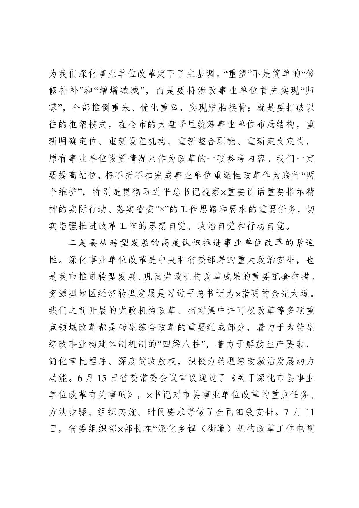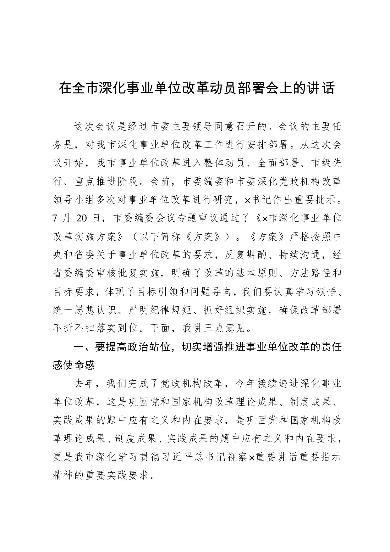 标题:在全市深化事业单位改革动员部署会上的讲话
