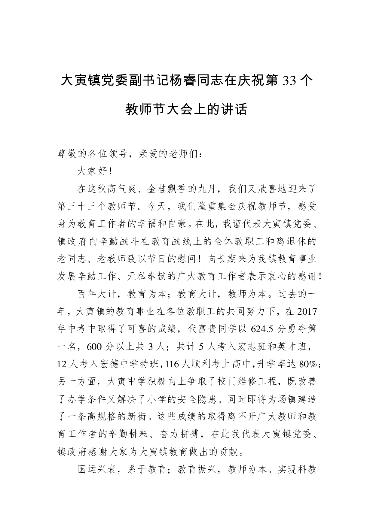 标题:杨睿:在庆祝第33个教师节大会上的讲话