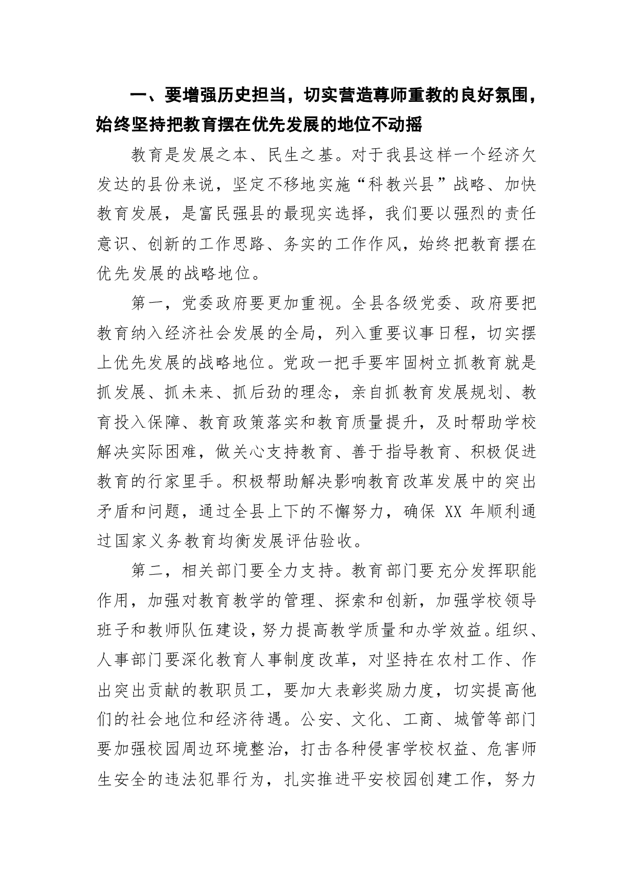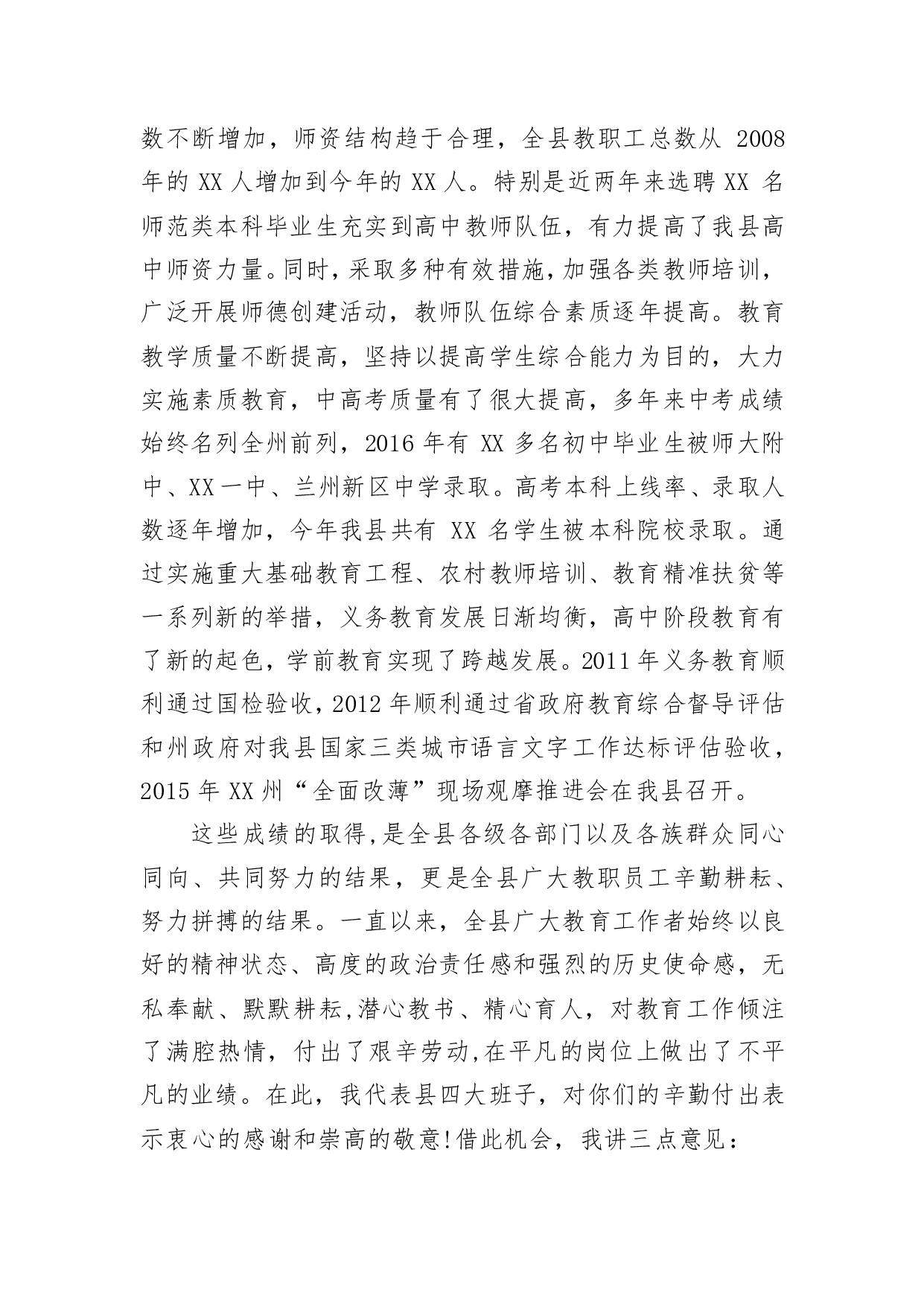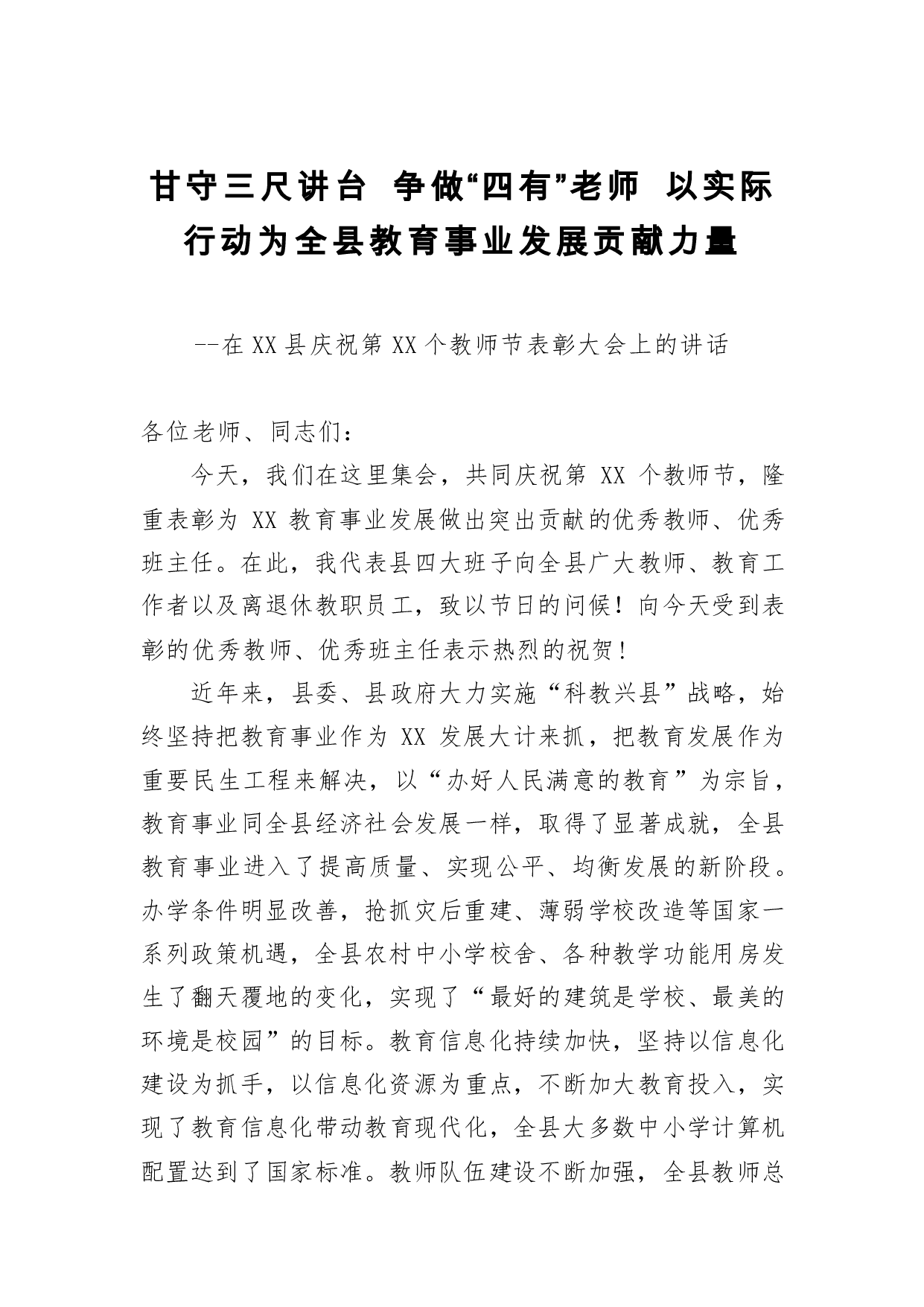 标题:教师节讲话:甘守三尺讲台 争做“四有”老师 以实际行动为全县教育事业发展贡献力量