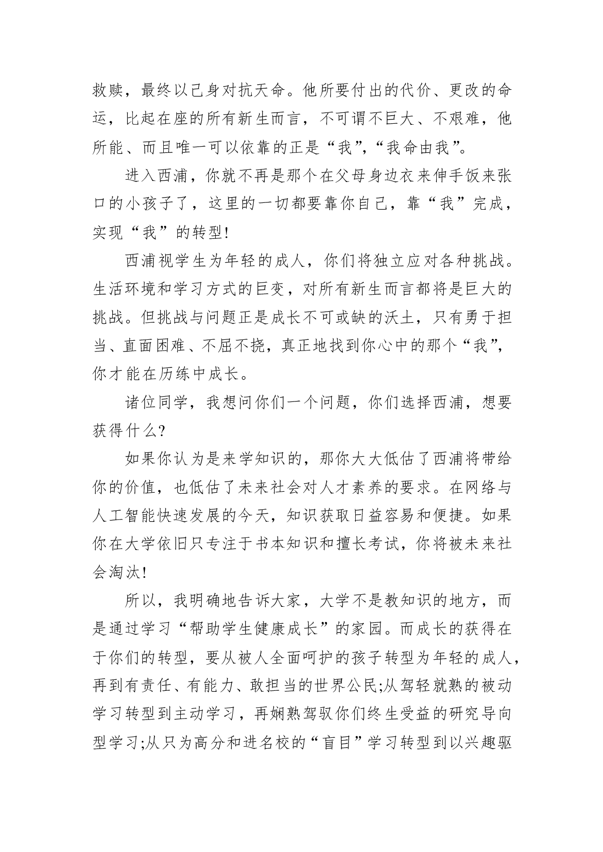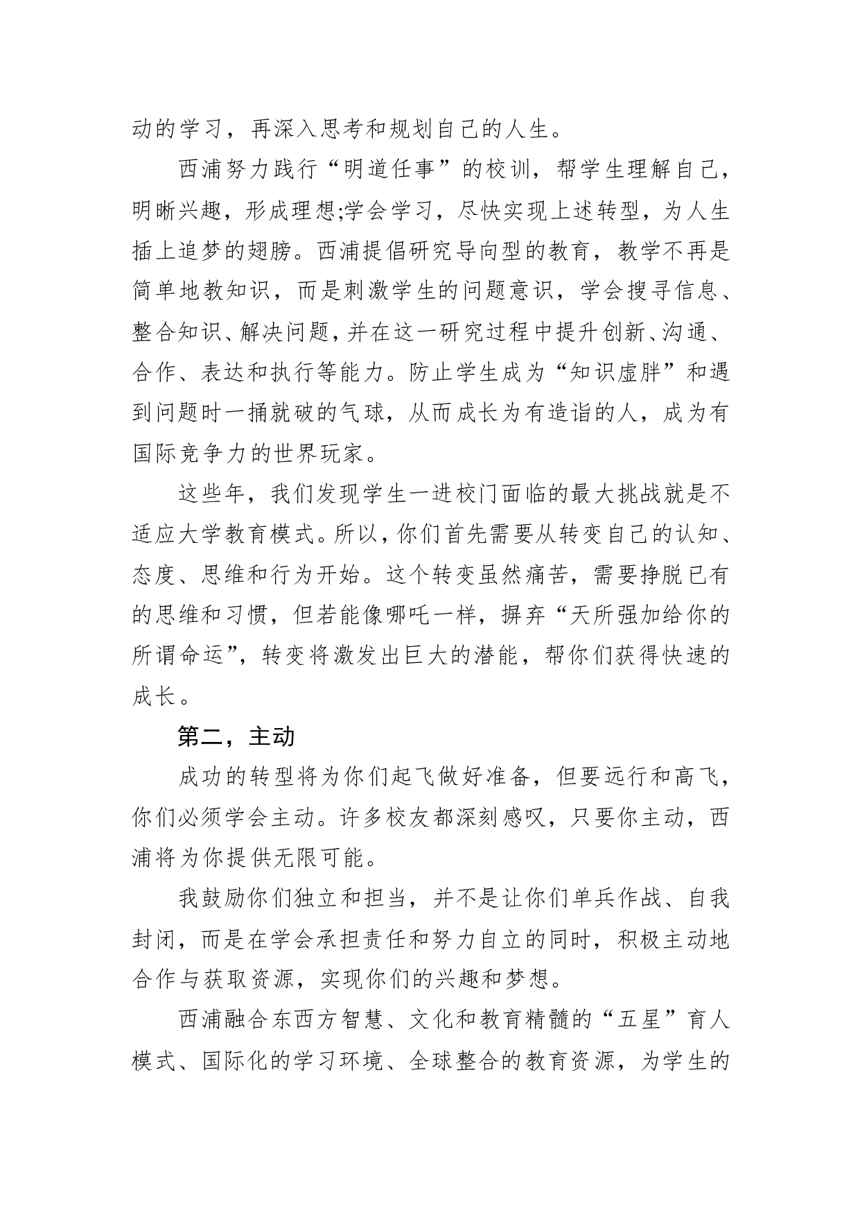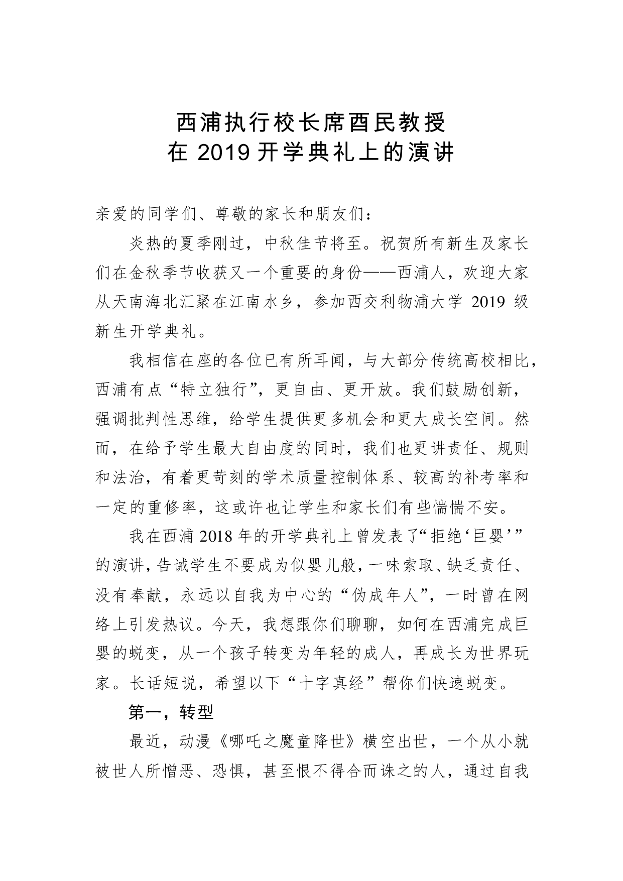 标题:西浦执行校长席酉民教授在2019开学典礼上的演讲