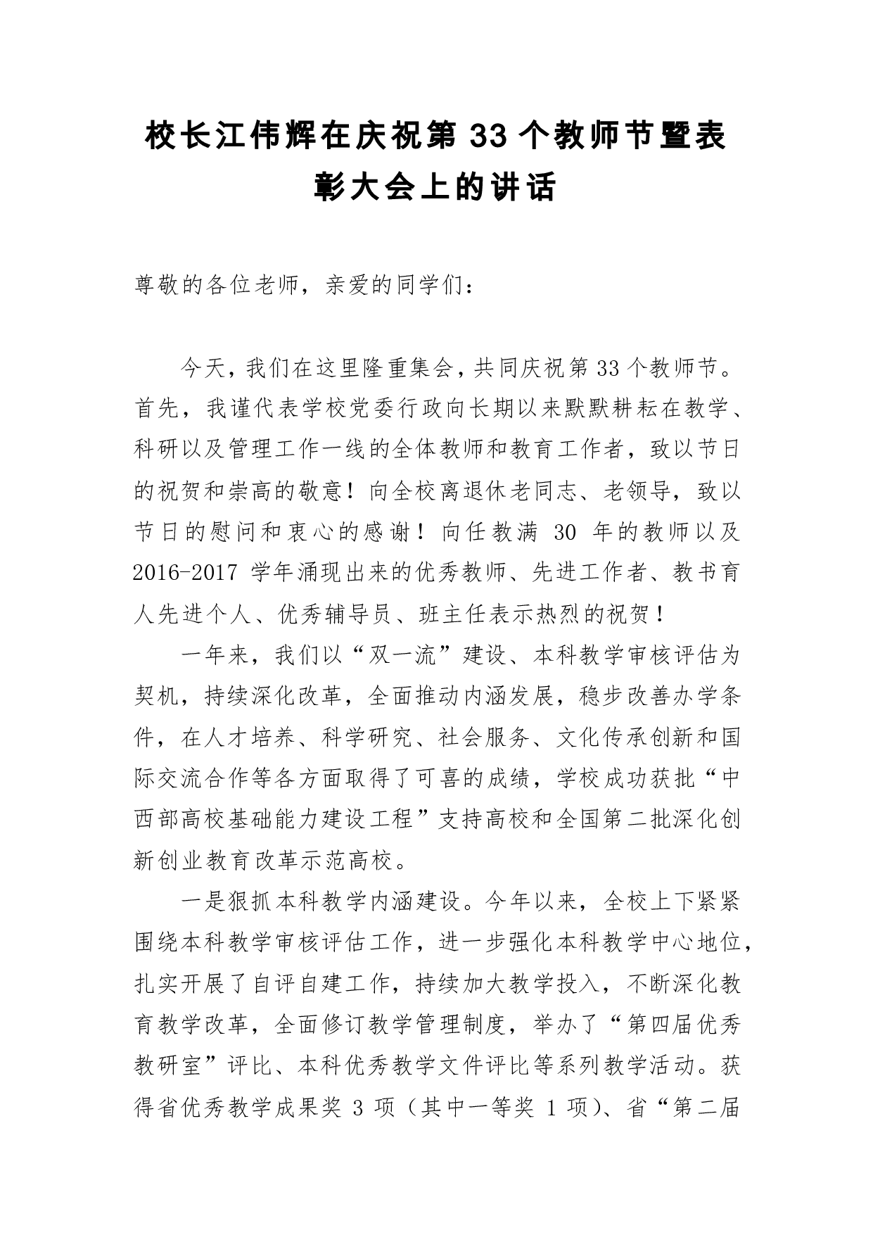 标题:教师节讲话:校长江伟辉在庆祝第33个教师节暨表彰大会上的讲话