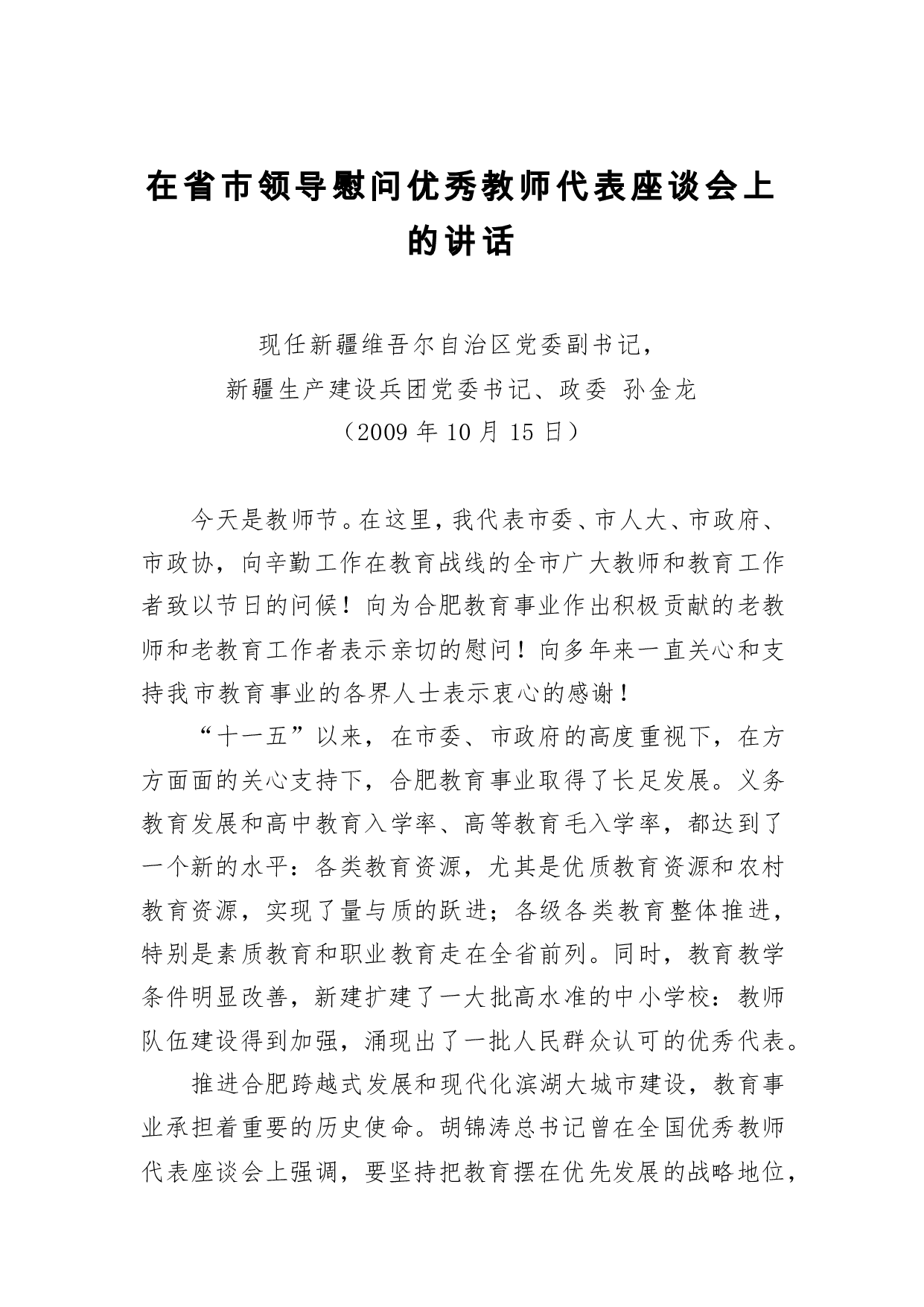标题:教师节讲话:在省市领导慰问优秀教师代表座谈会上的讲话