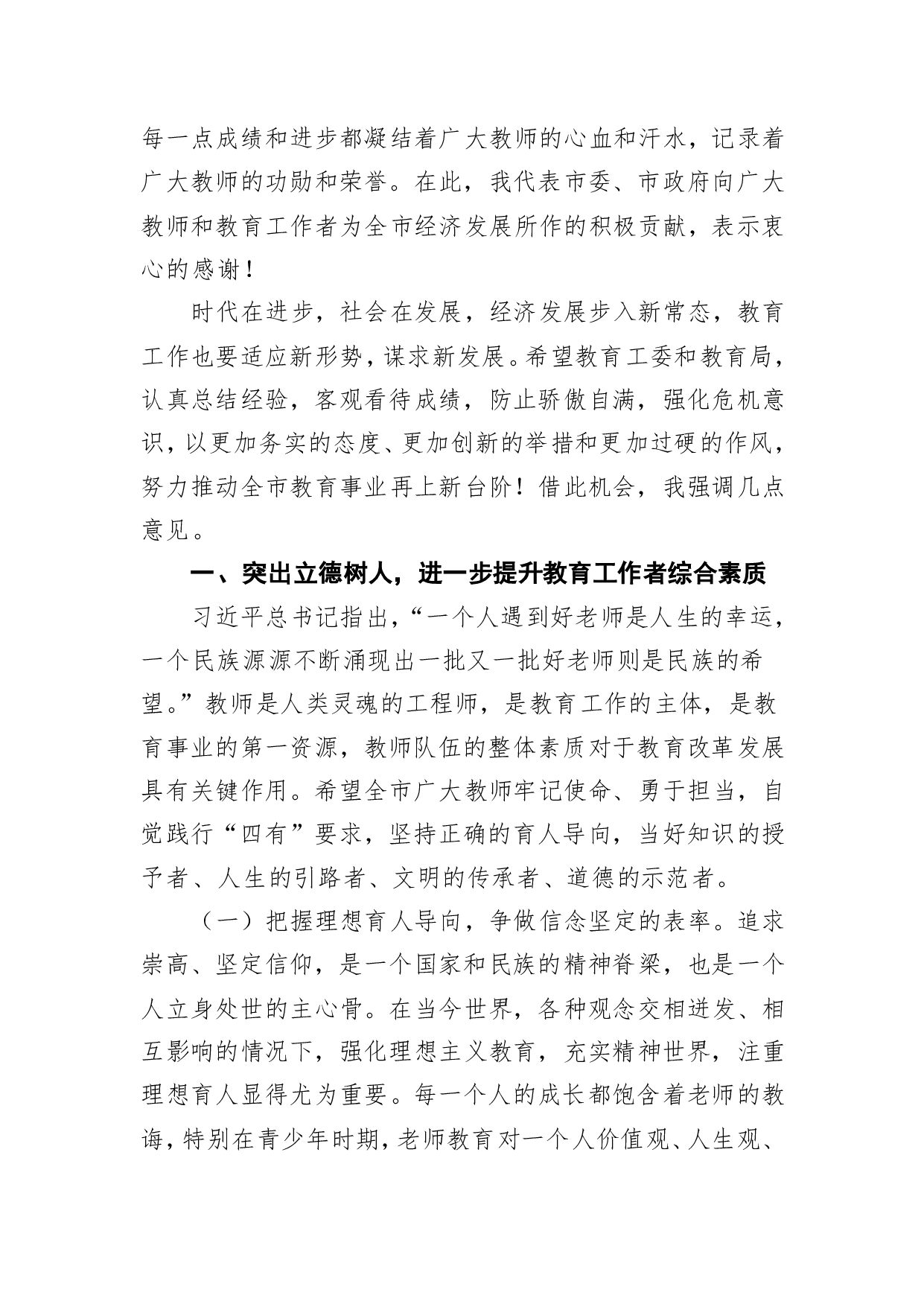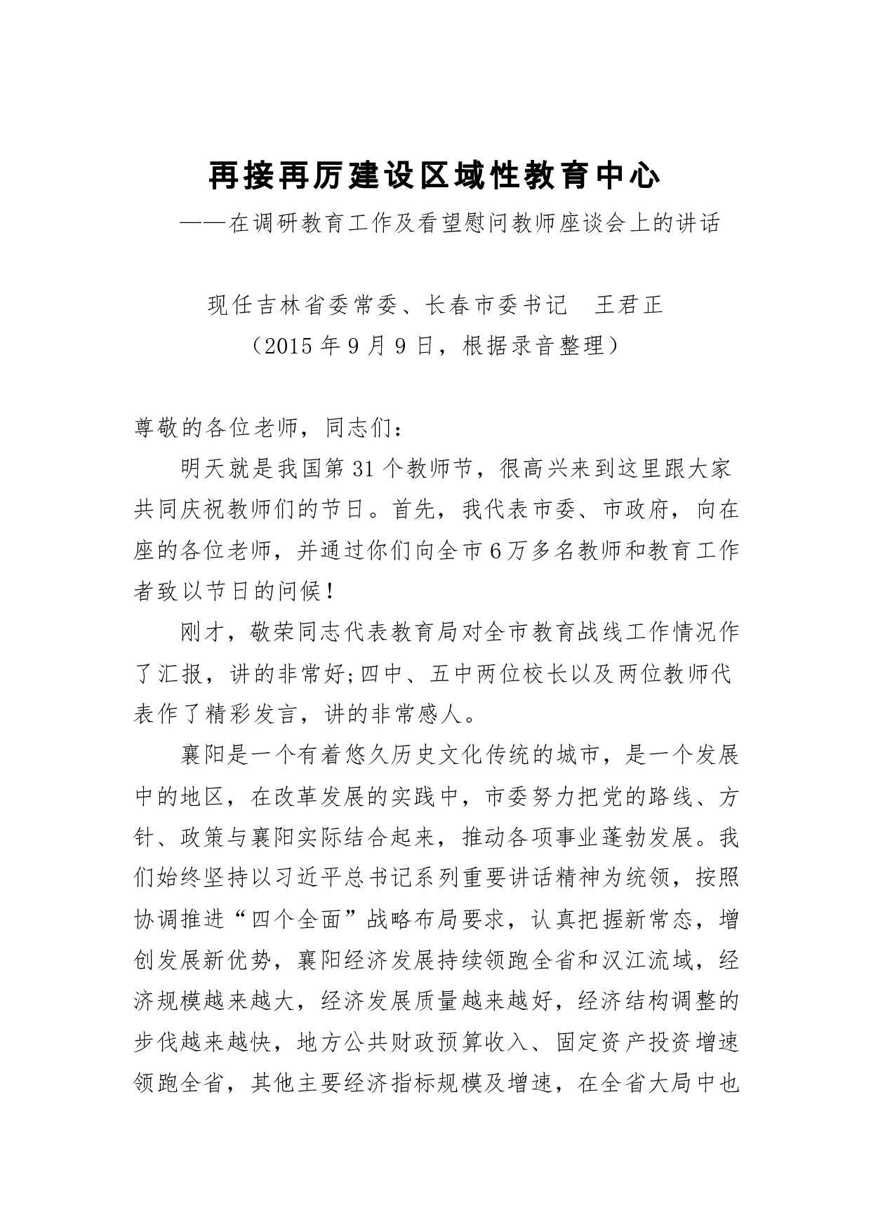 标题:教师节讲话:再接再厉建设区域性教育中心