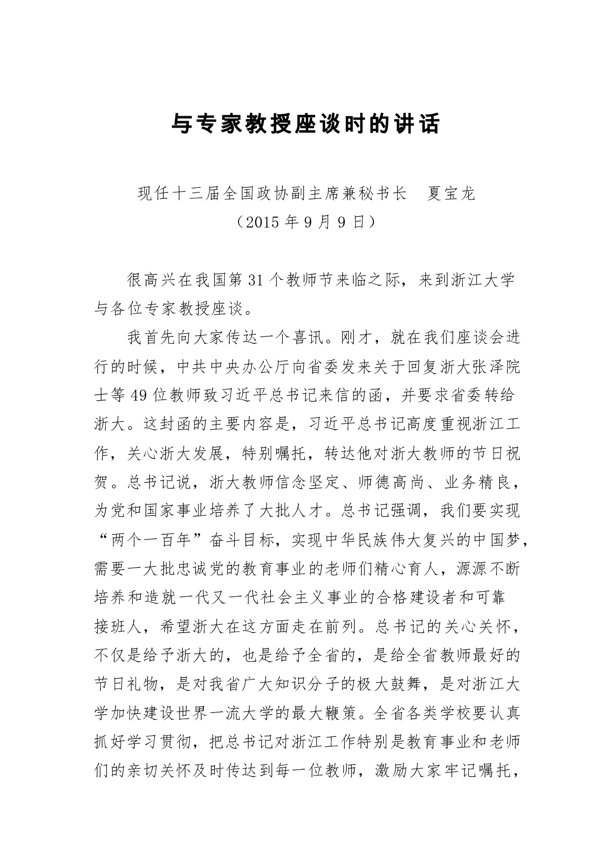 标题:教师节讲话:与专家教授座谈时的讲话