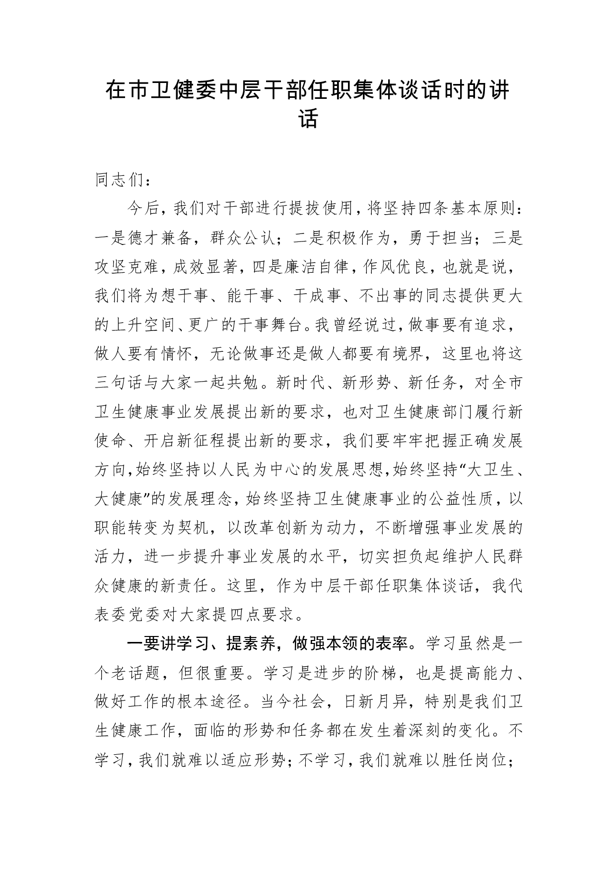 标题:在市卫健委中层干部任职集体谈话时的讲话