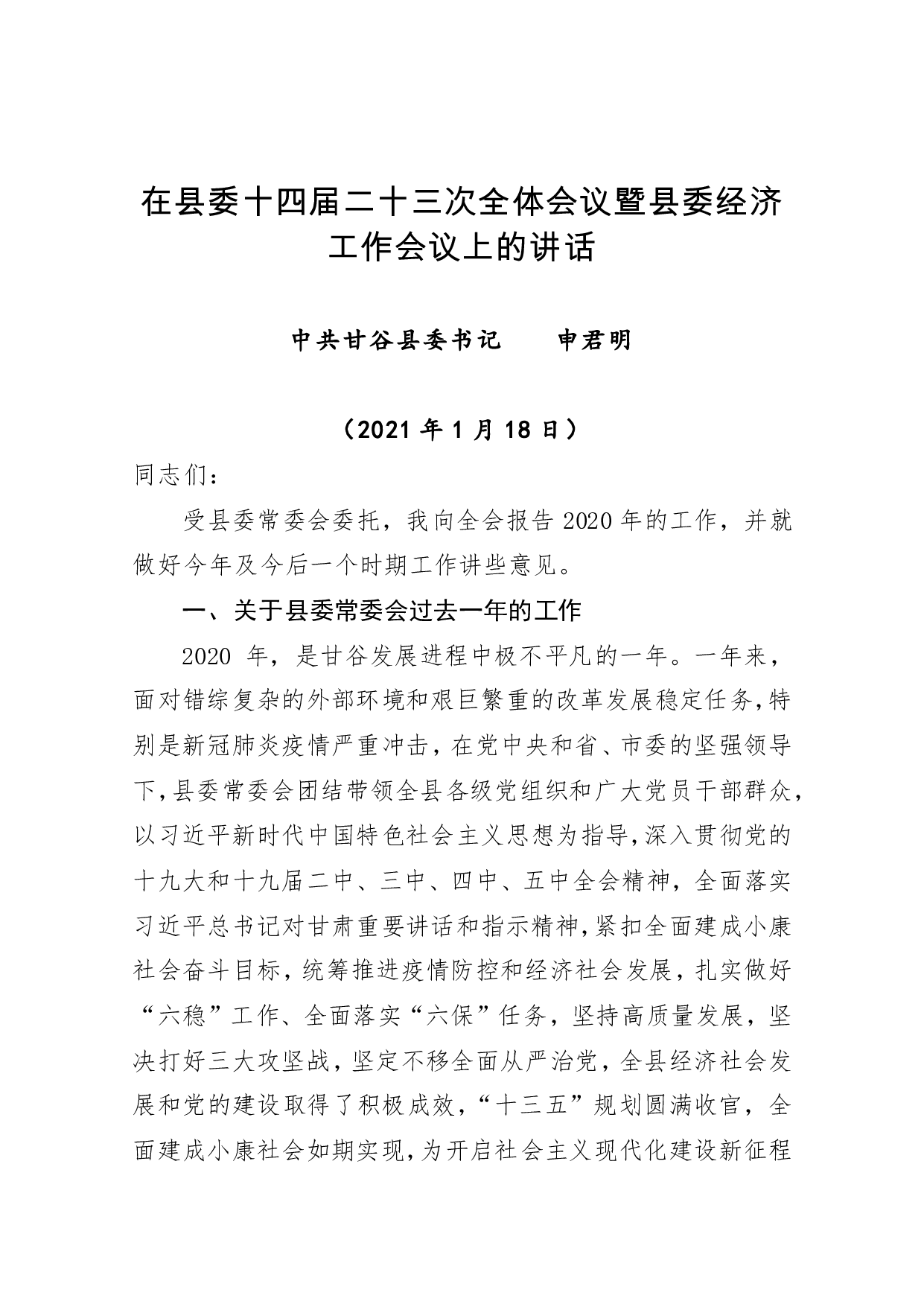 标题:申君明:在县委十四届二十三次全体会议暨县委经济工作会议上的讲话
