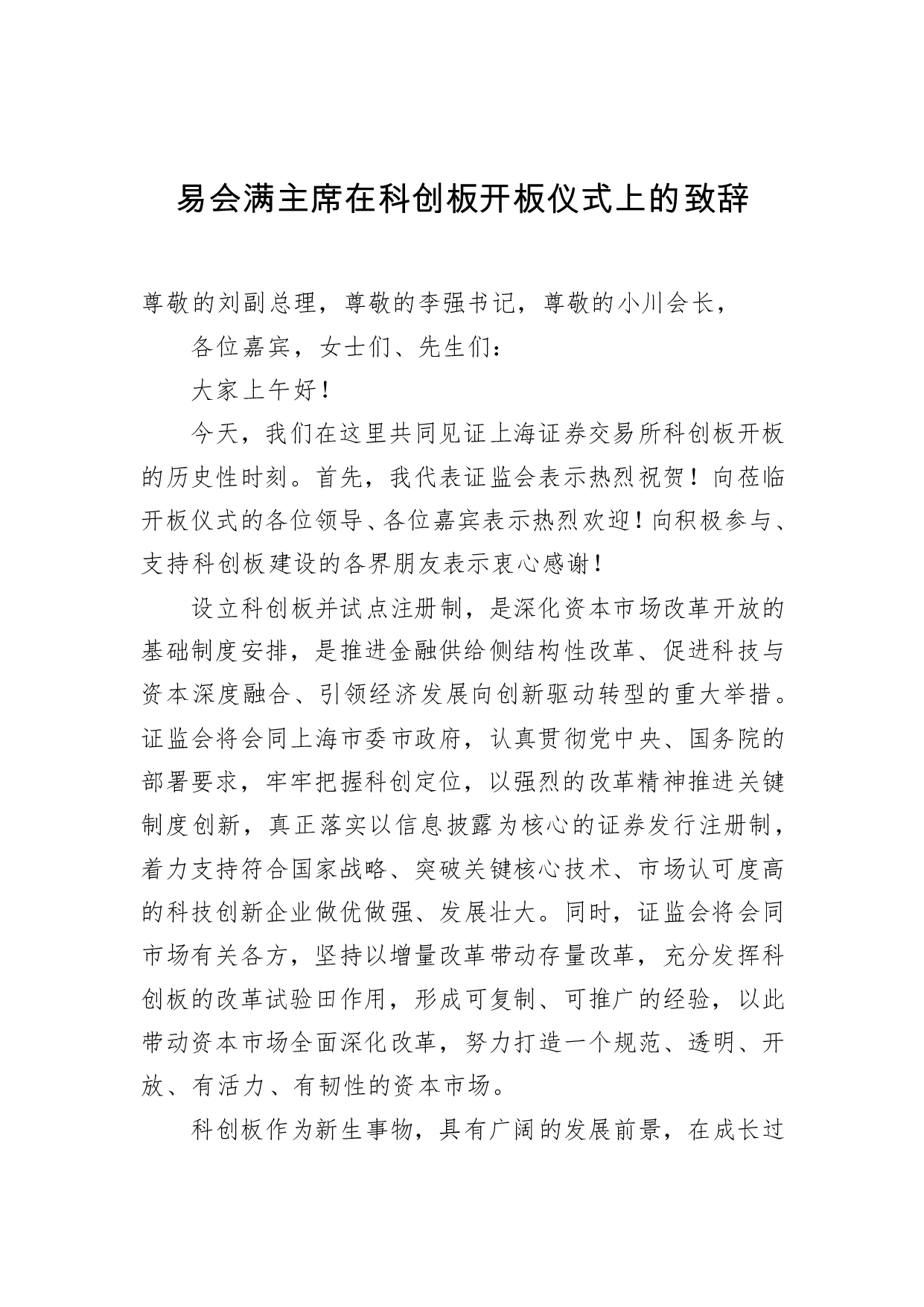 标题:易会满:在科创板开板仪式上的致辞_转换