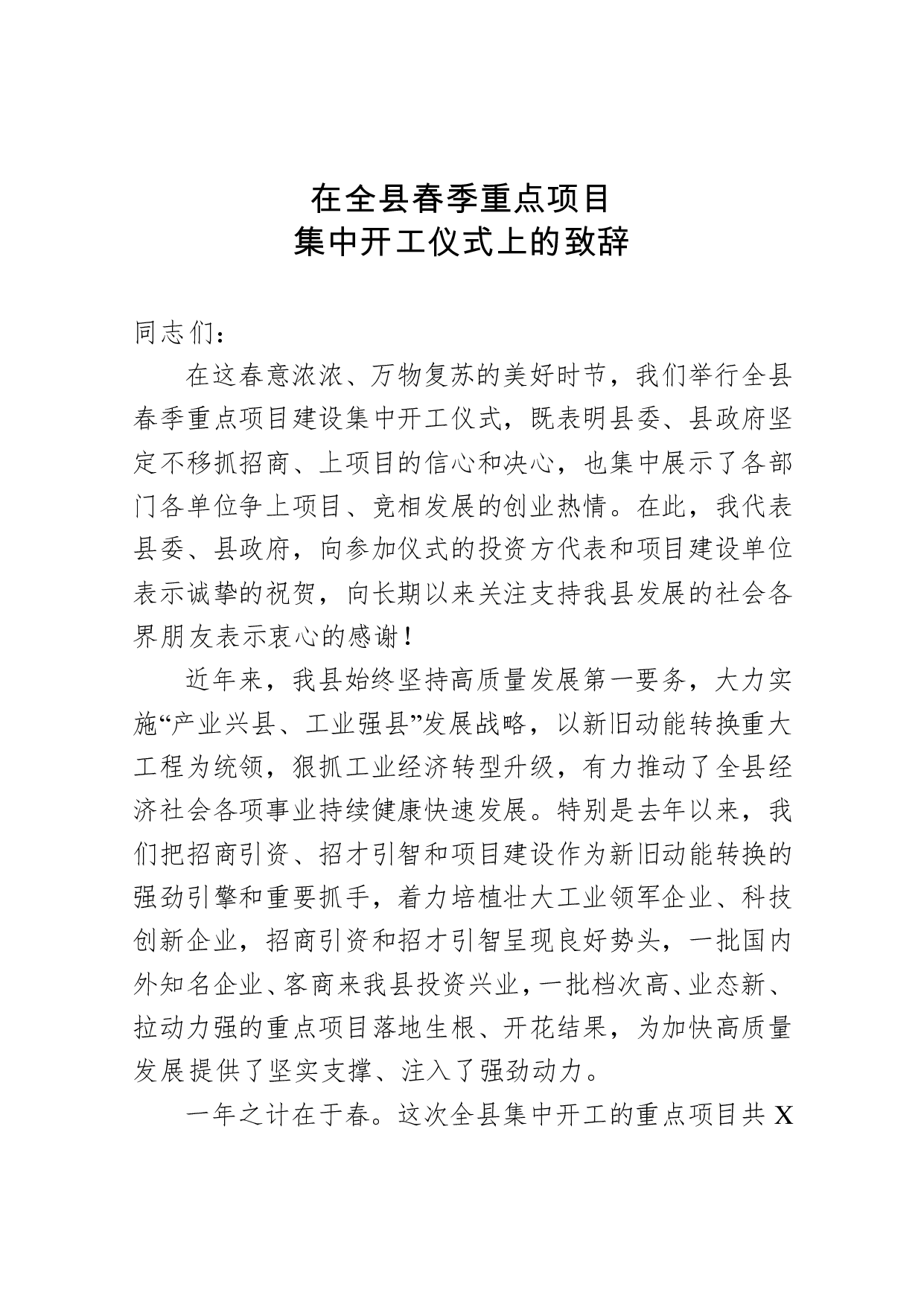 标题:在全县春季重点项目集中开工仪式上的致辞
