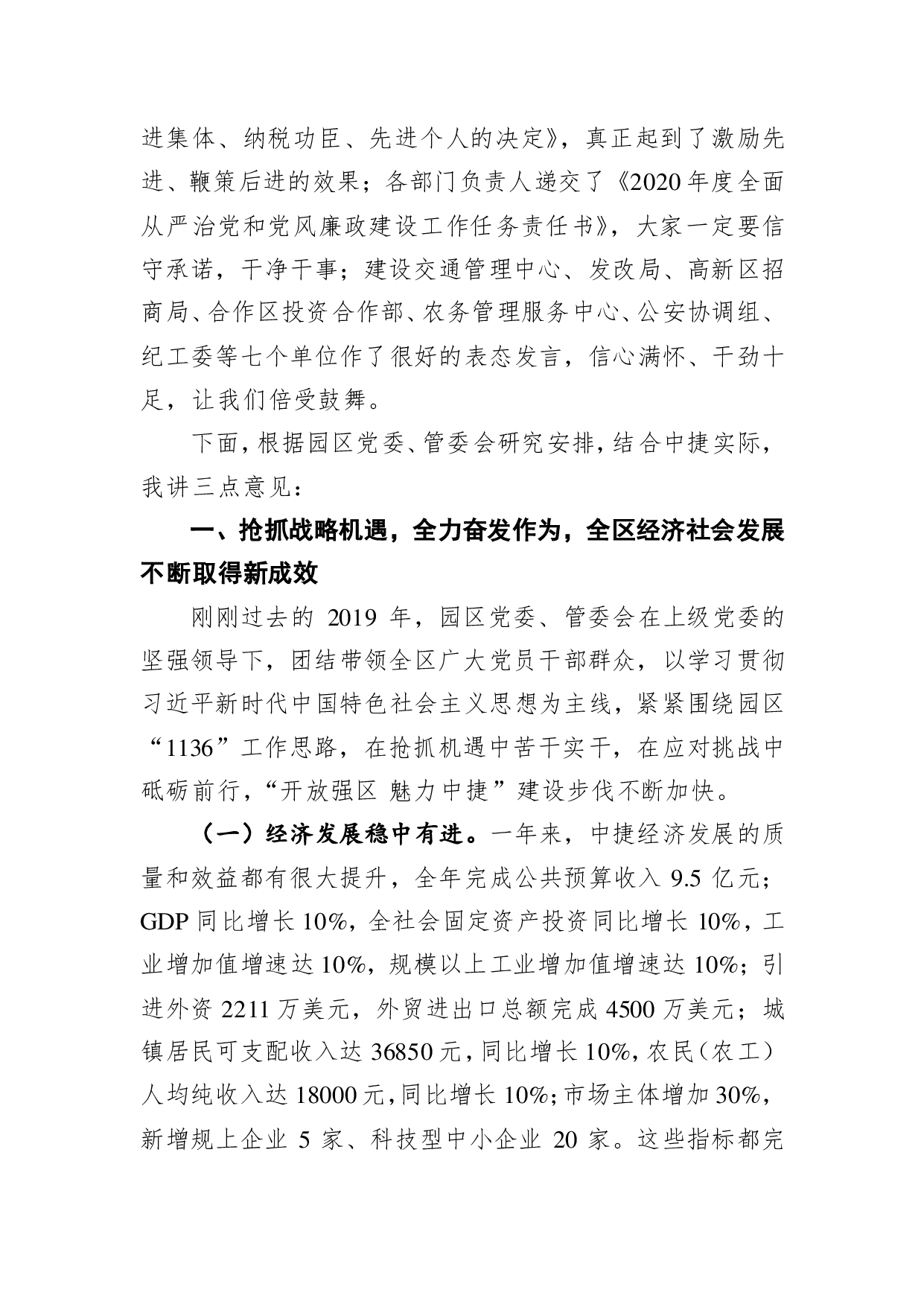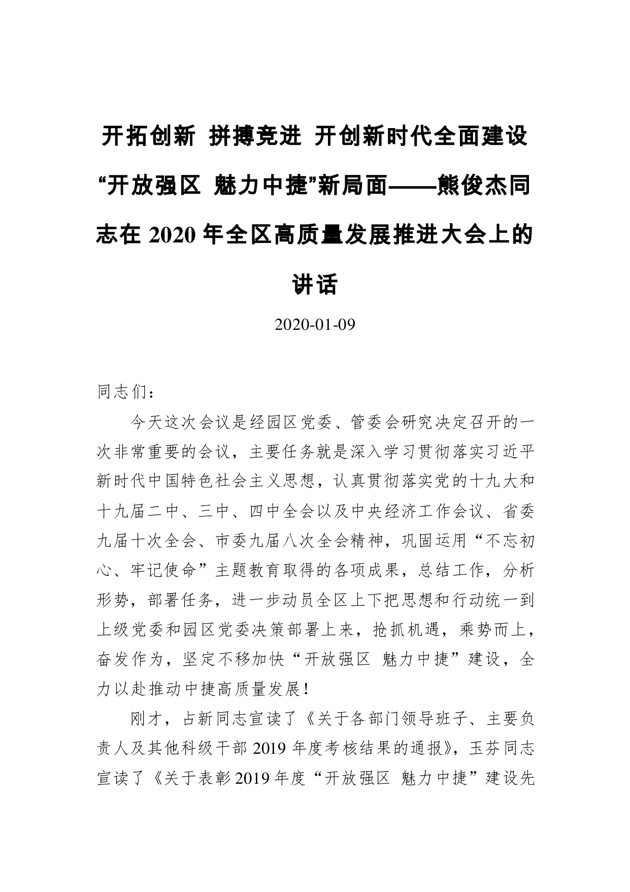 标题:熊俊杰:开拓创新 拼搏竞进 开创新时代全面建设“开放强区 魅力中捷”新局面——在2020年全