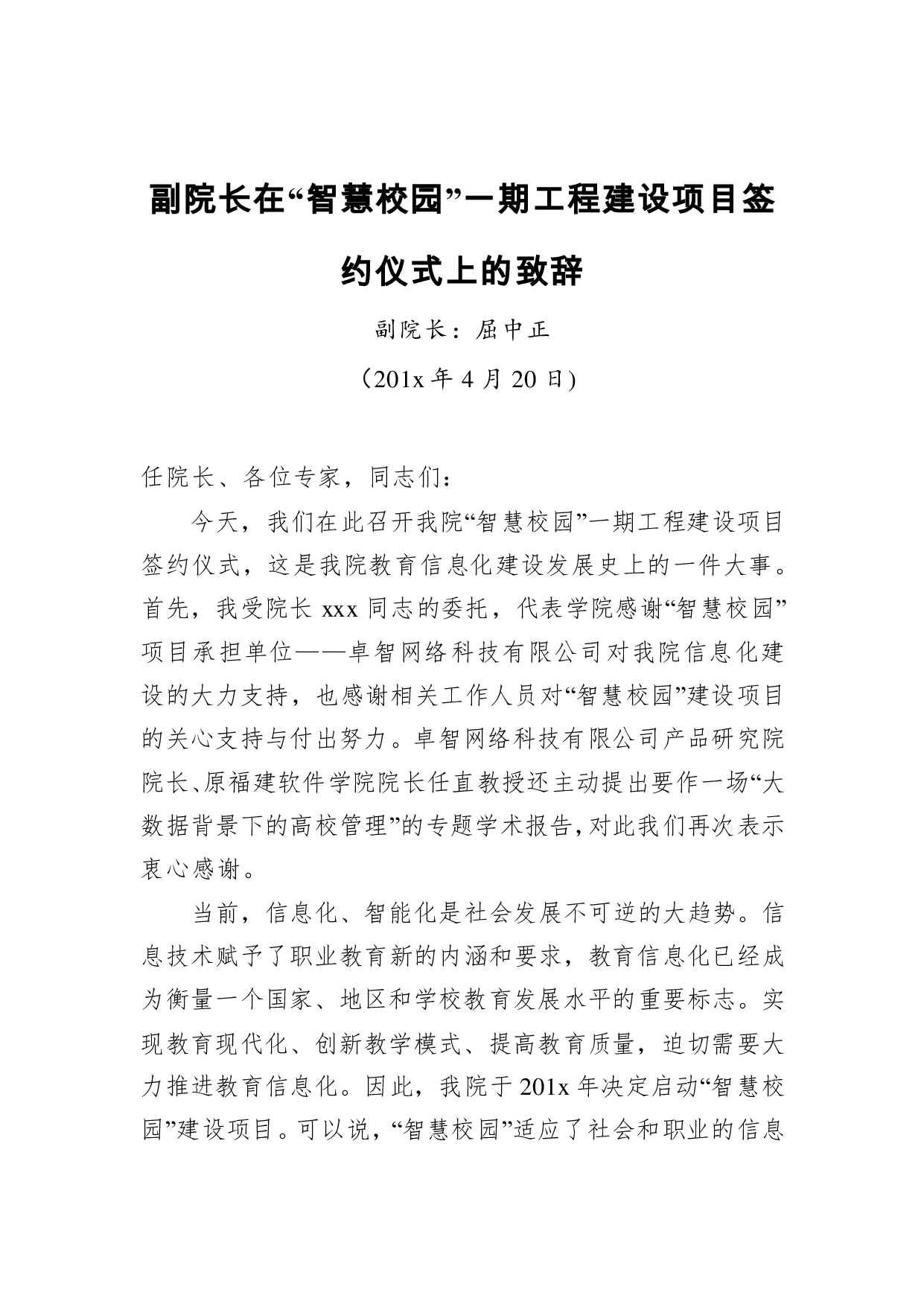 标题:副院长在“智慧校园”一期工程建设项目签约仪式上的致辞
