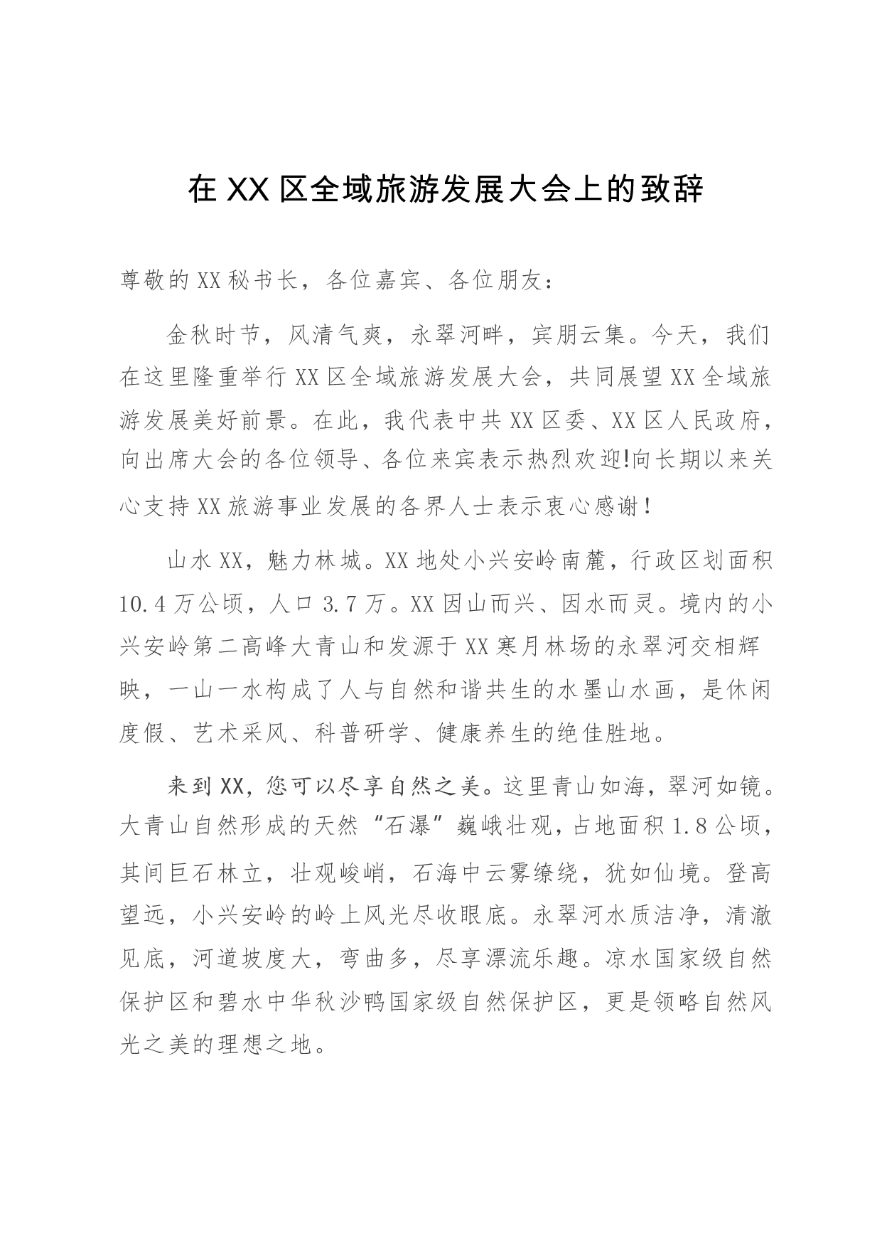 标题:在区全域旅游发展大会上的致辞