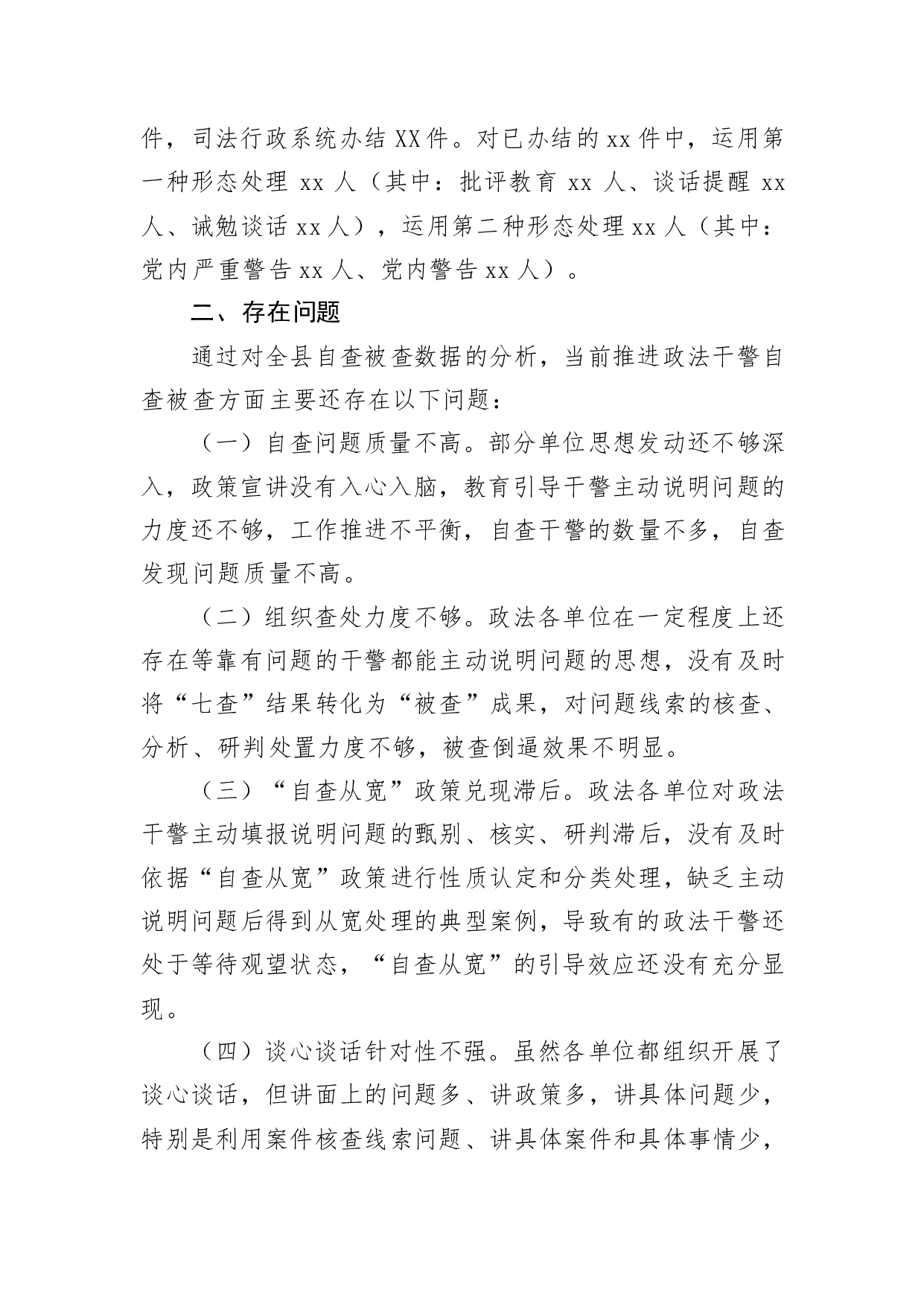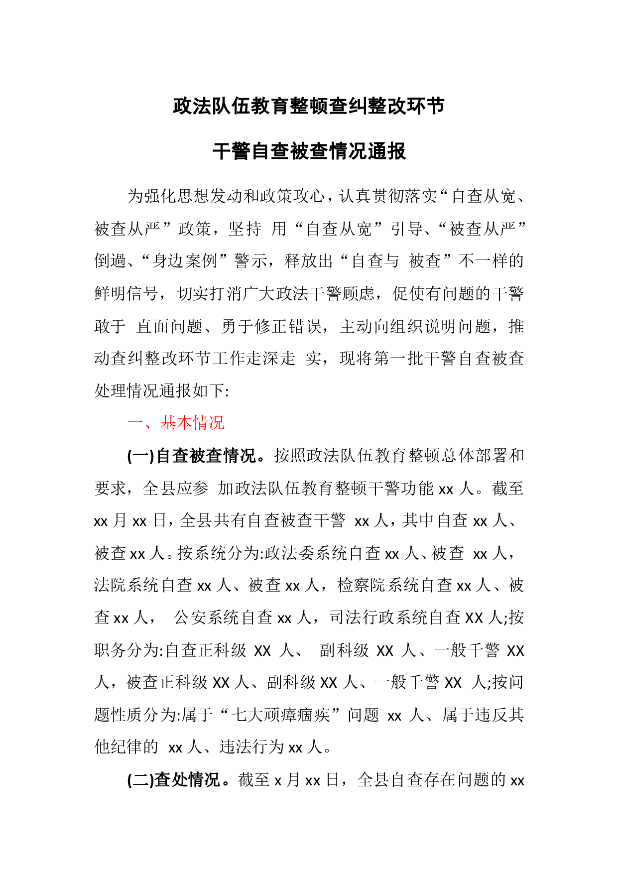 标题:政法队伍教育整顿查纠整改环节干警自查被查情况通报