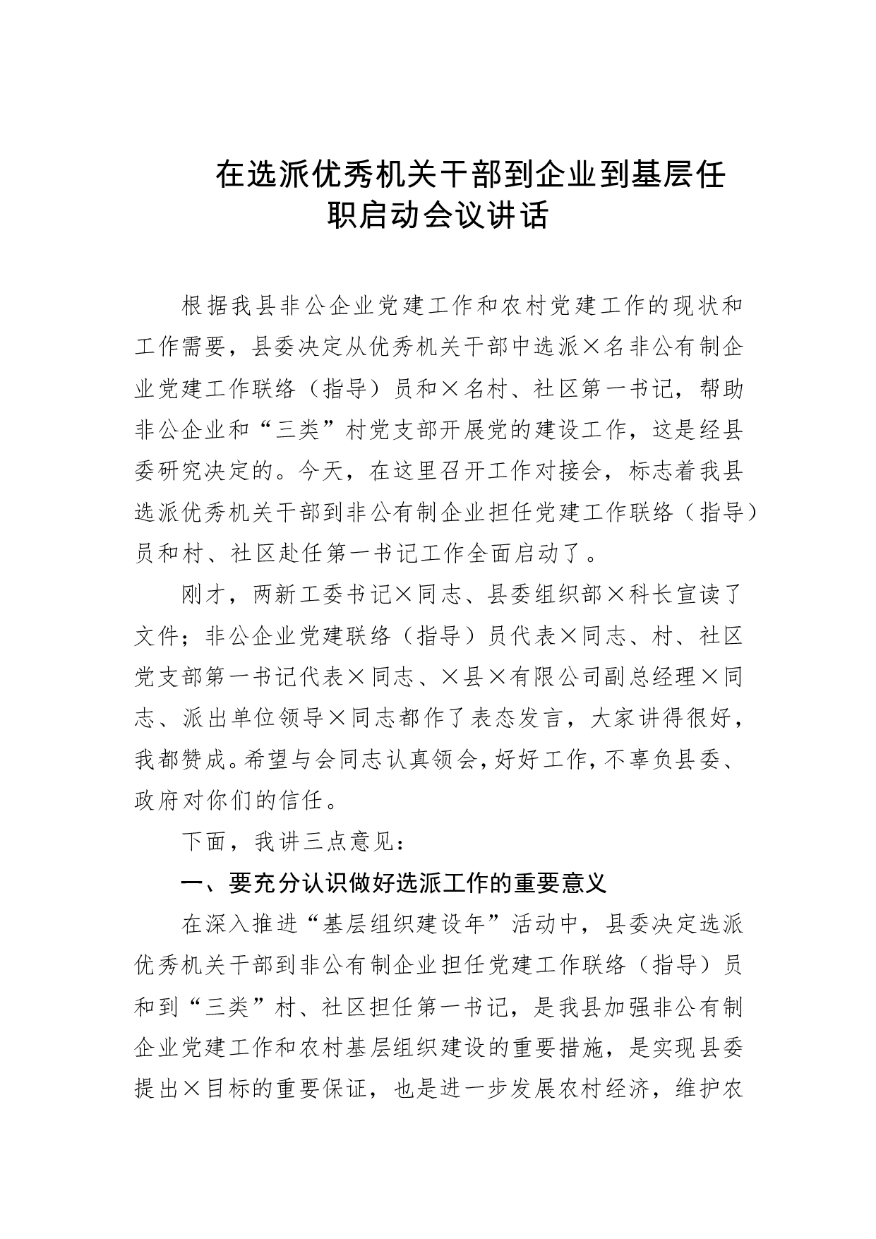 标题:在选派优秀机关干部到企业到基层任职启动会议讲话 (2)