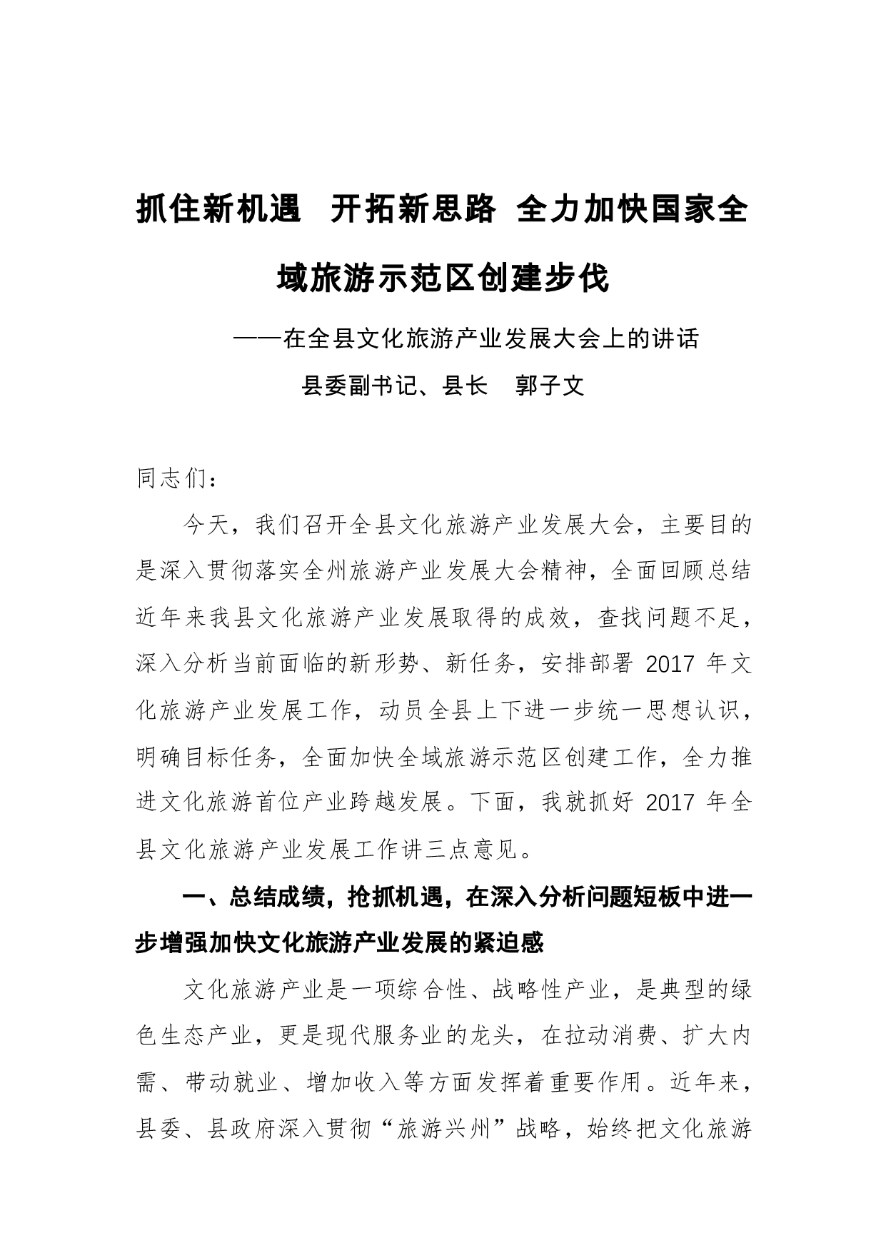 标题:县委副书记、县长郭子文:在全县文化旅游产业发展大会上的讲话
