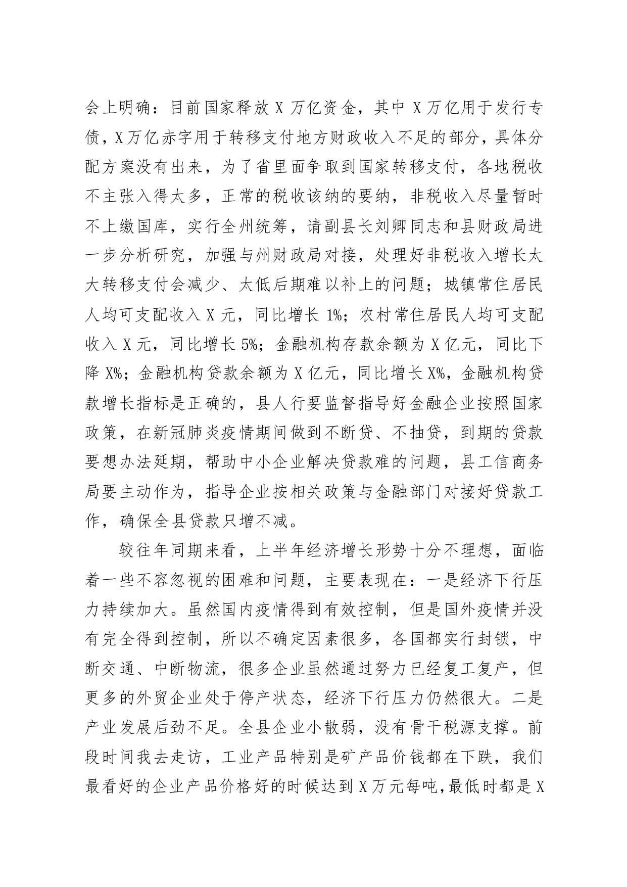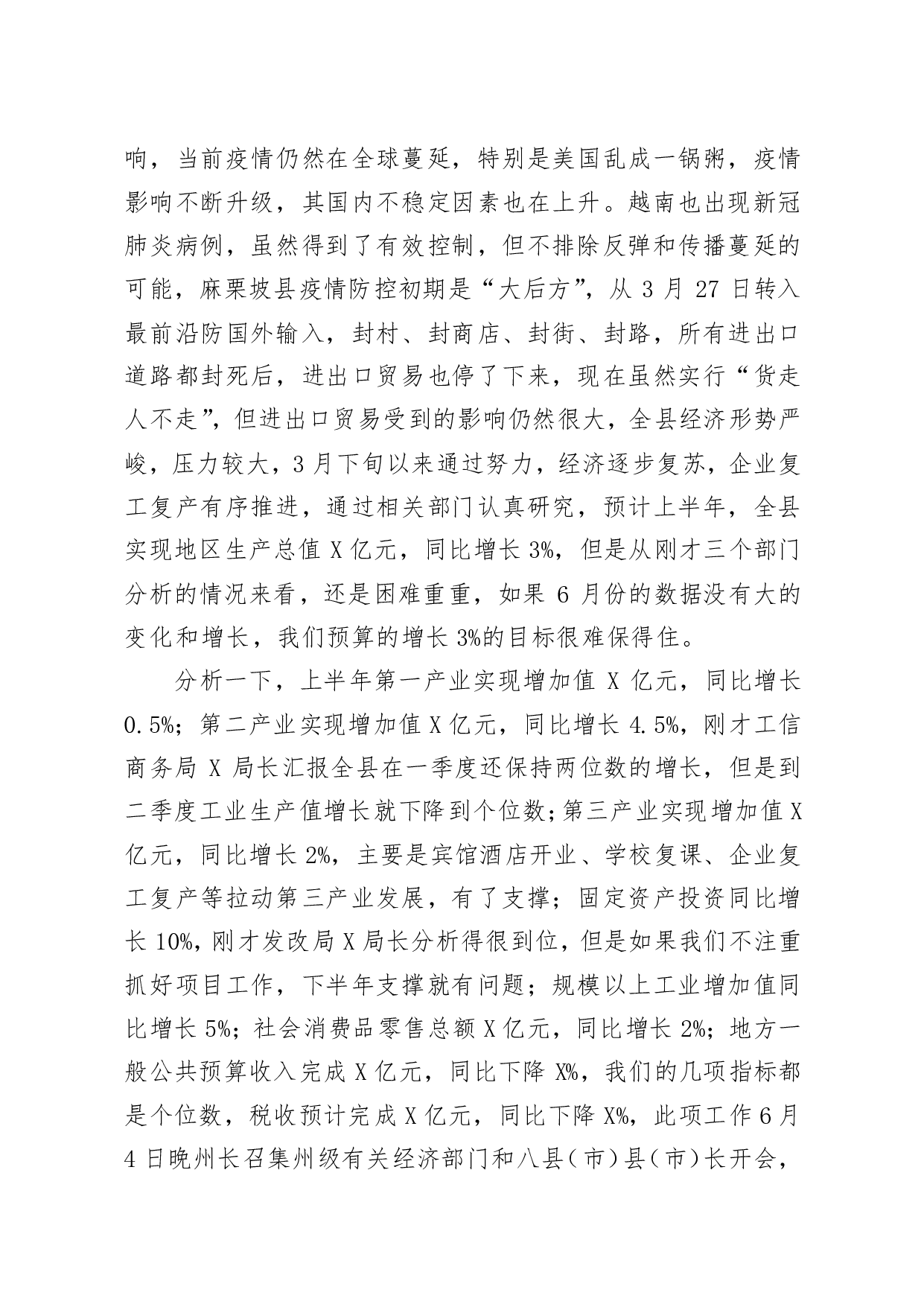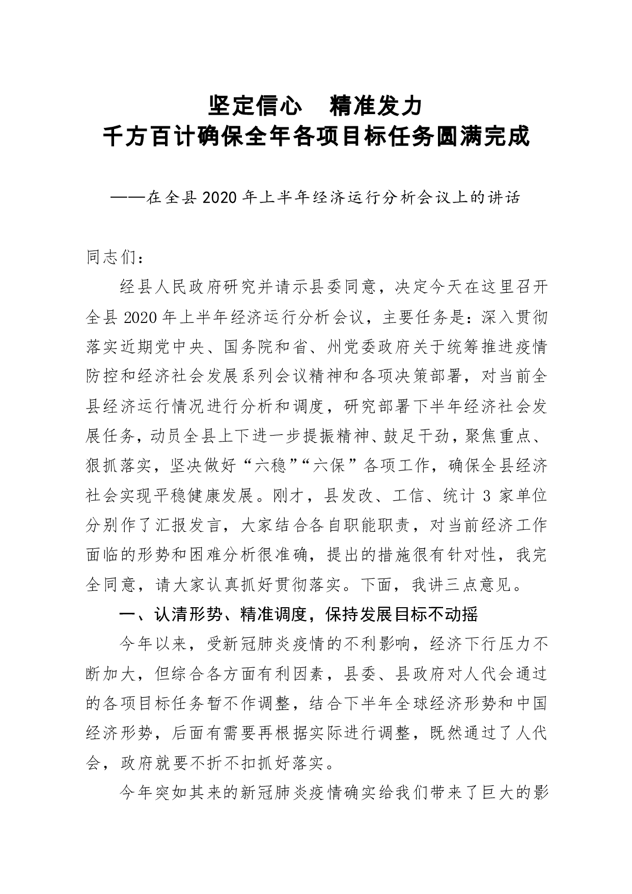 标题:在全县2020年上半年经济运行分析会议上的讲话
