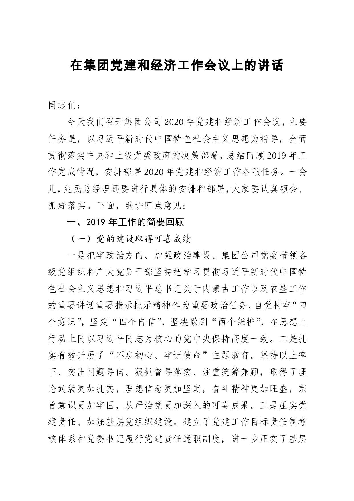 标题:在集团党建和经济工作会议上的讲话