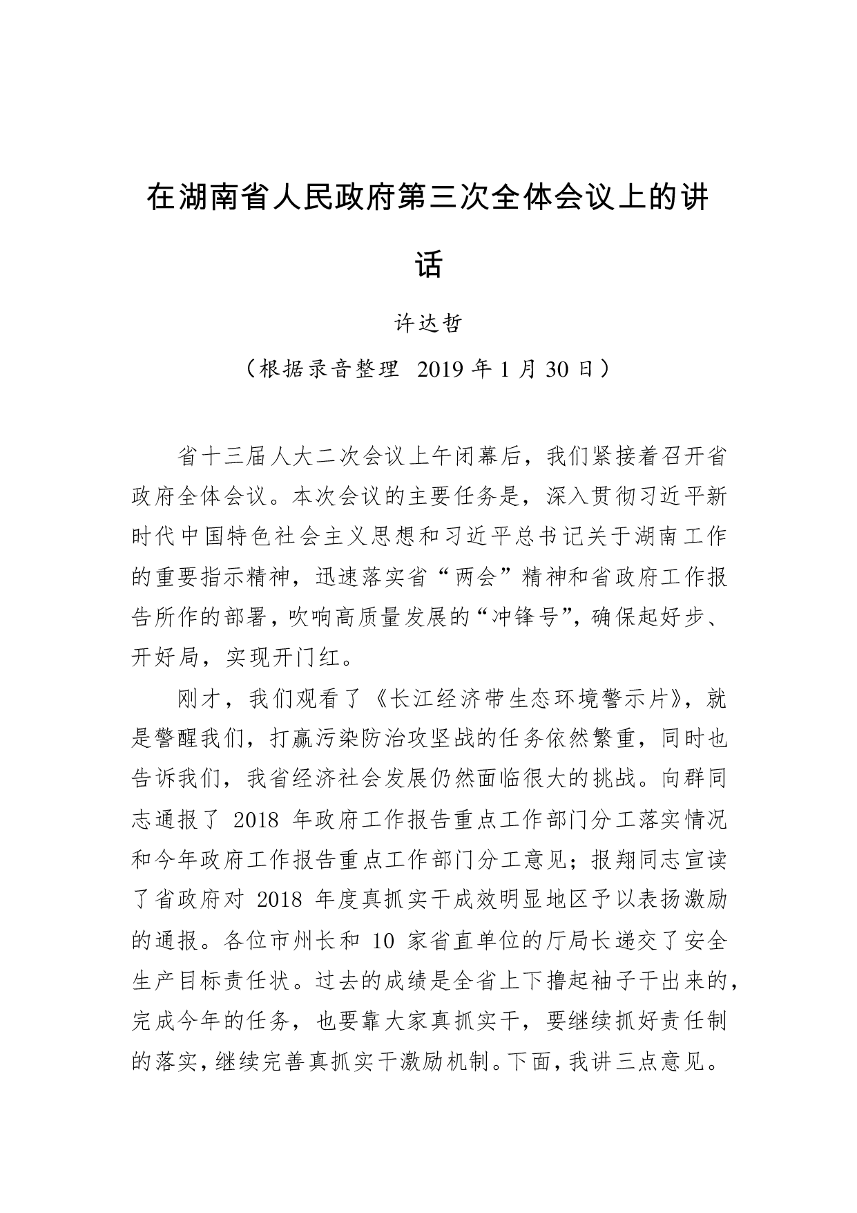 标题:许达哲:在湖南省人民政府第三次全体会议上的讲话
