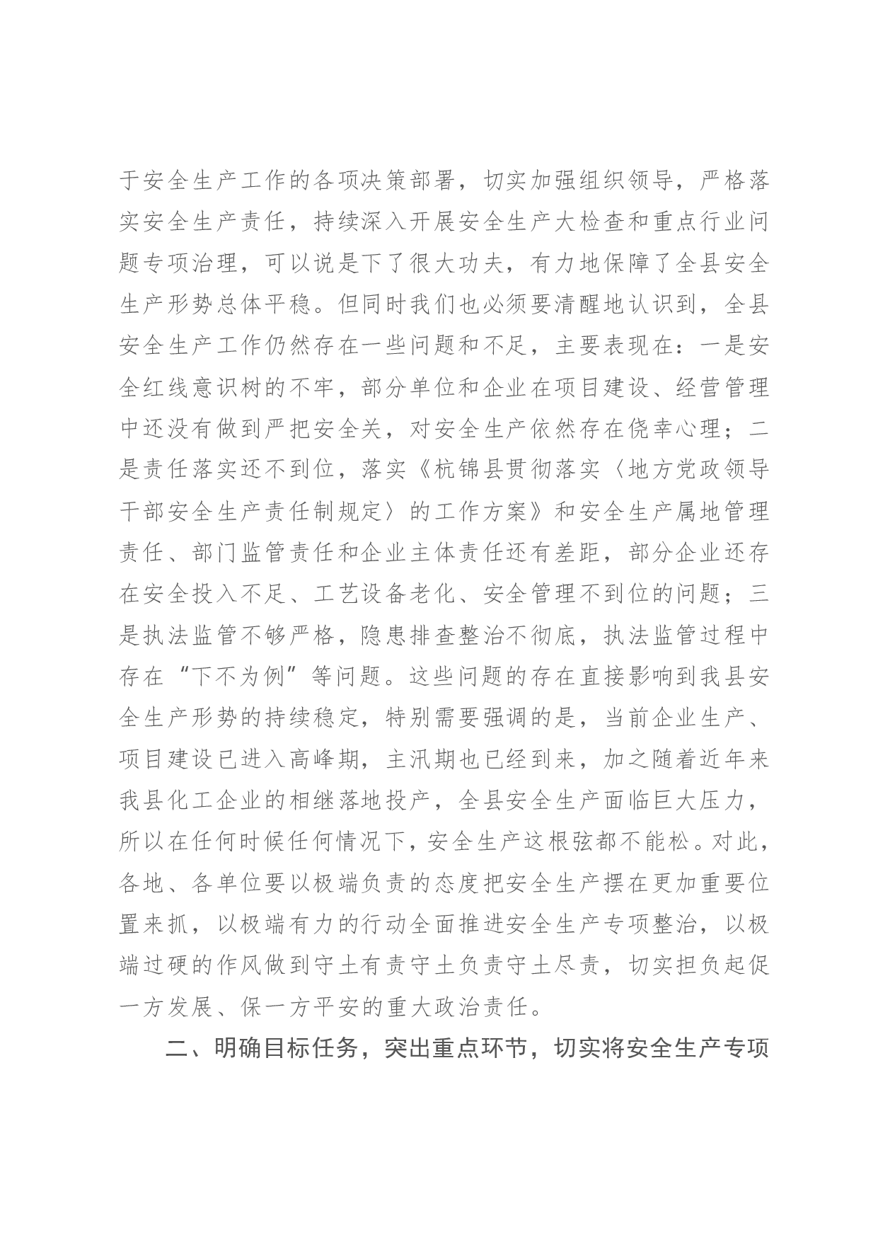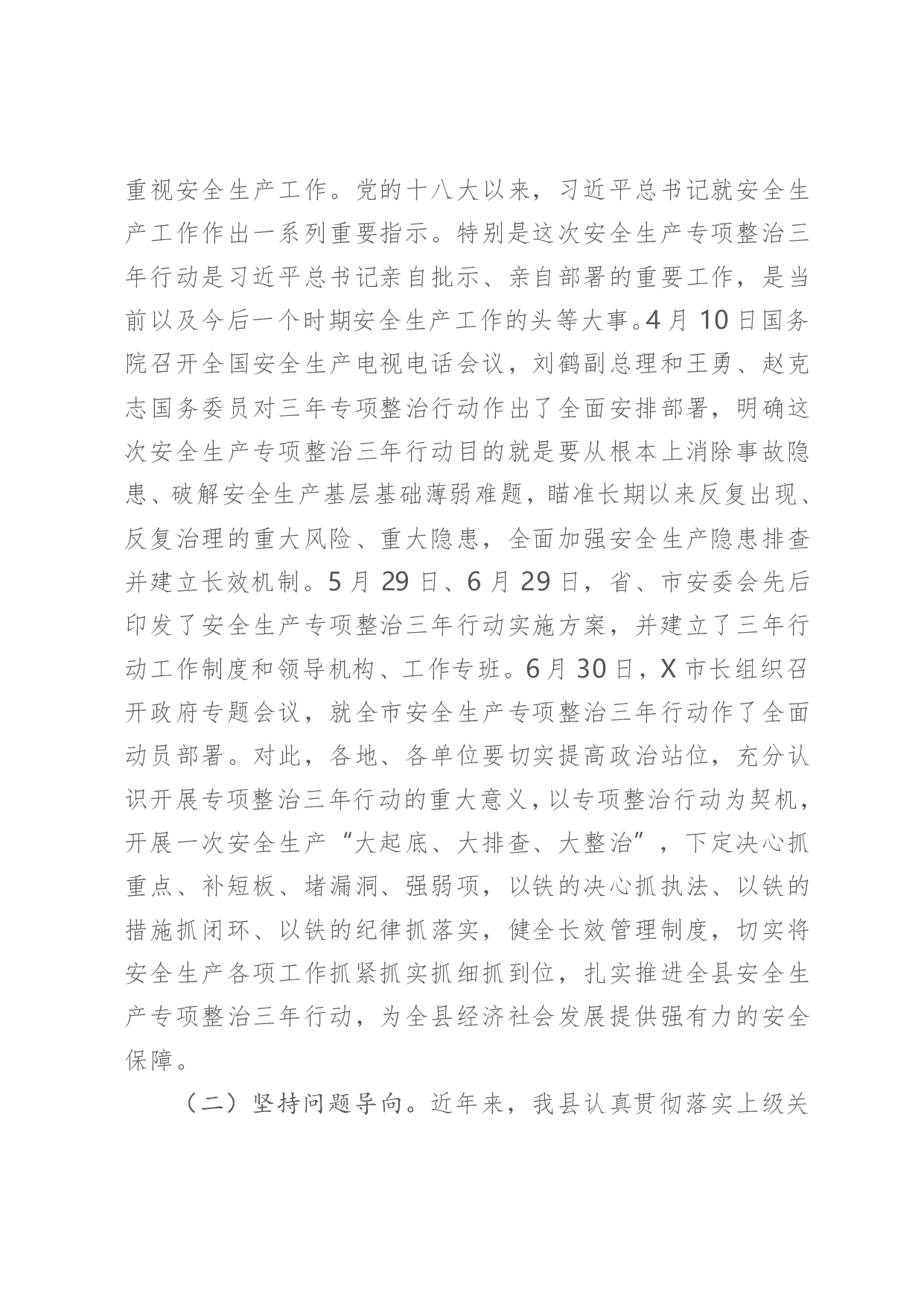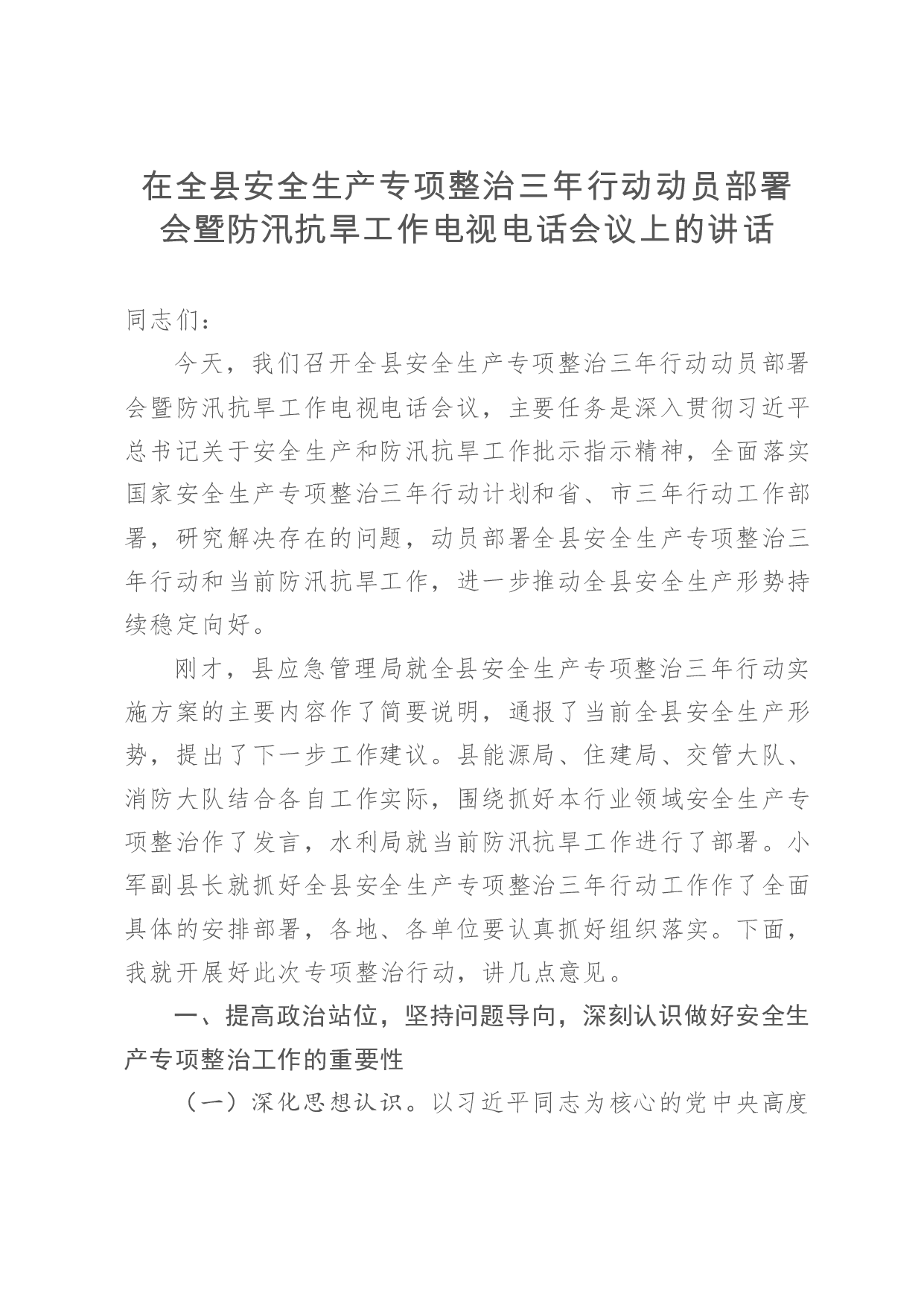 标题:在全县安全生产专项整治三年行动动员部署会暨防汛抗旱工作电视电话会议上的讲话