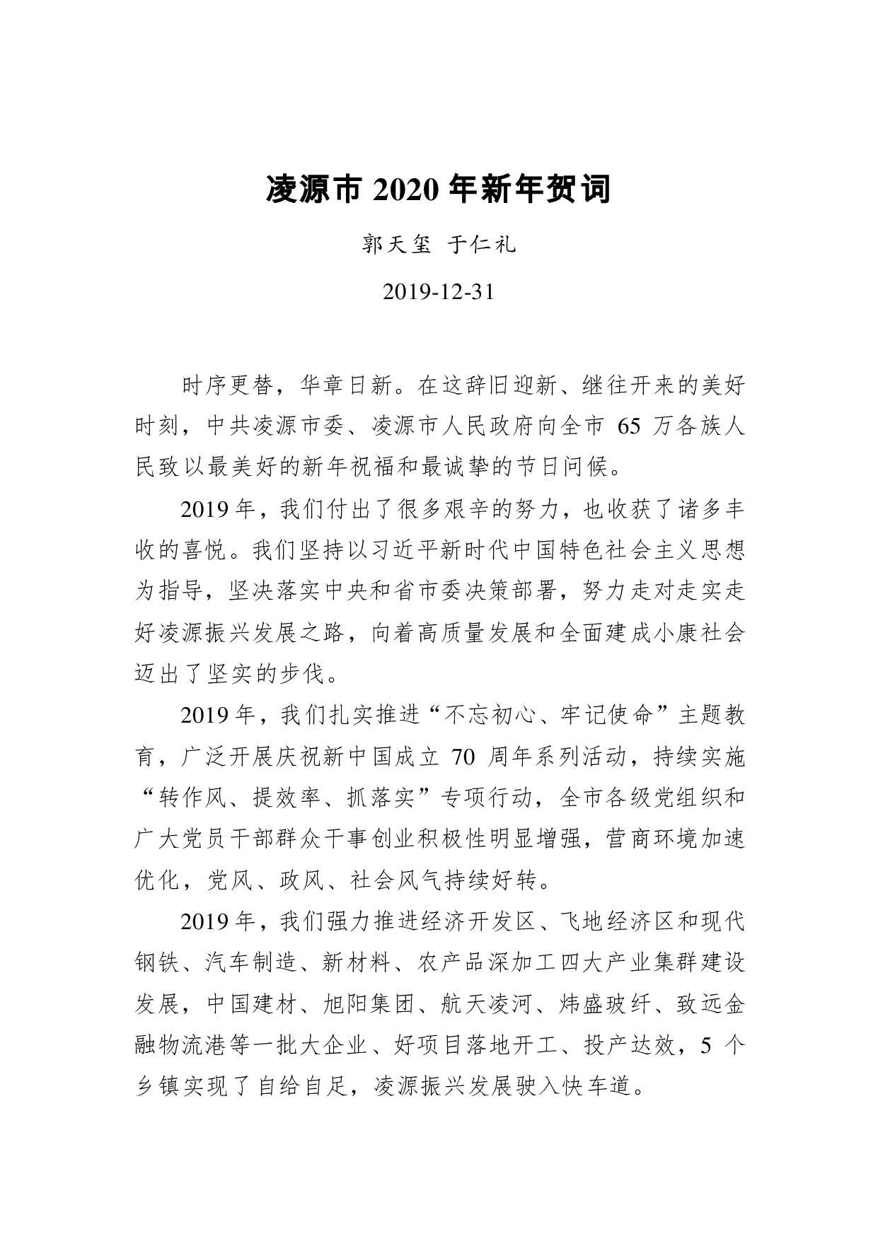 标题:凌源市2020年新年贺词