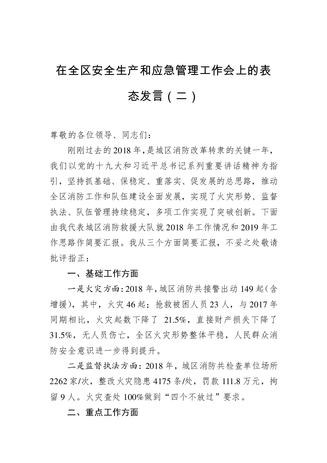 标题:在全区安全生产和应急管理工作会上的表态发言(二)