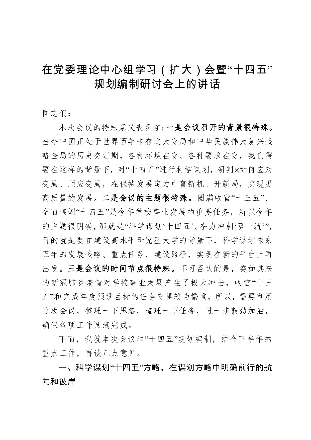 标题:在党委理论中心组学习扩大会暨十四五规划编制研讨会上的讲话