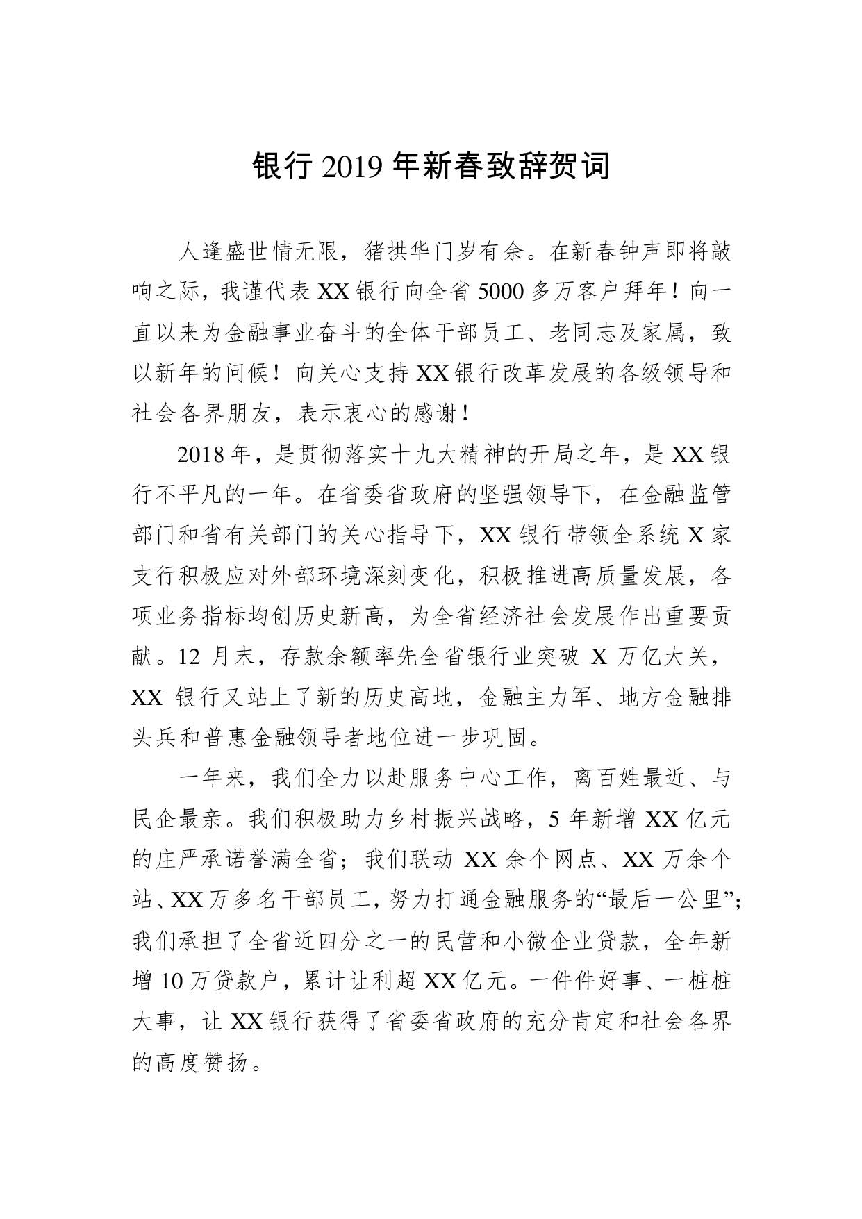 标题:银行2019年新年致辞