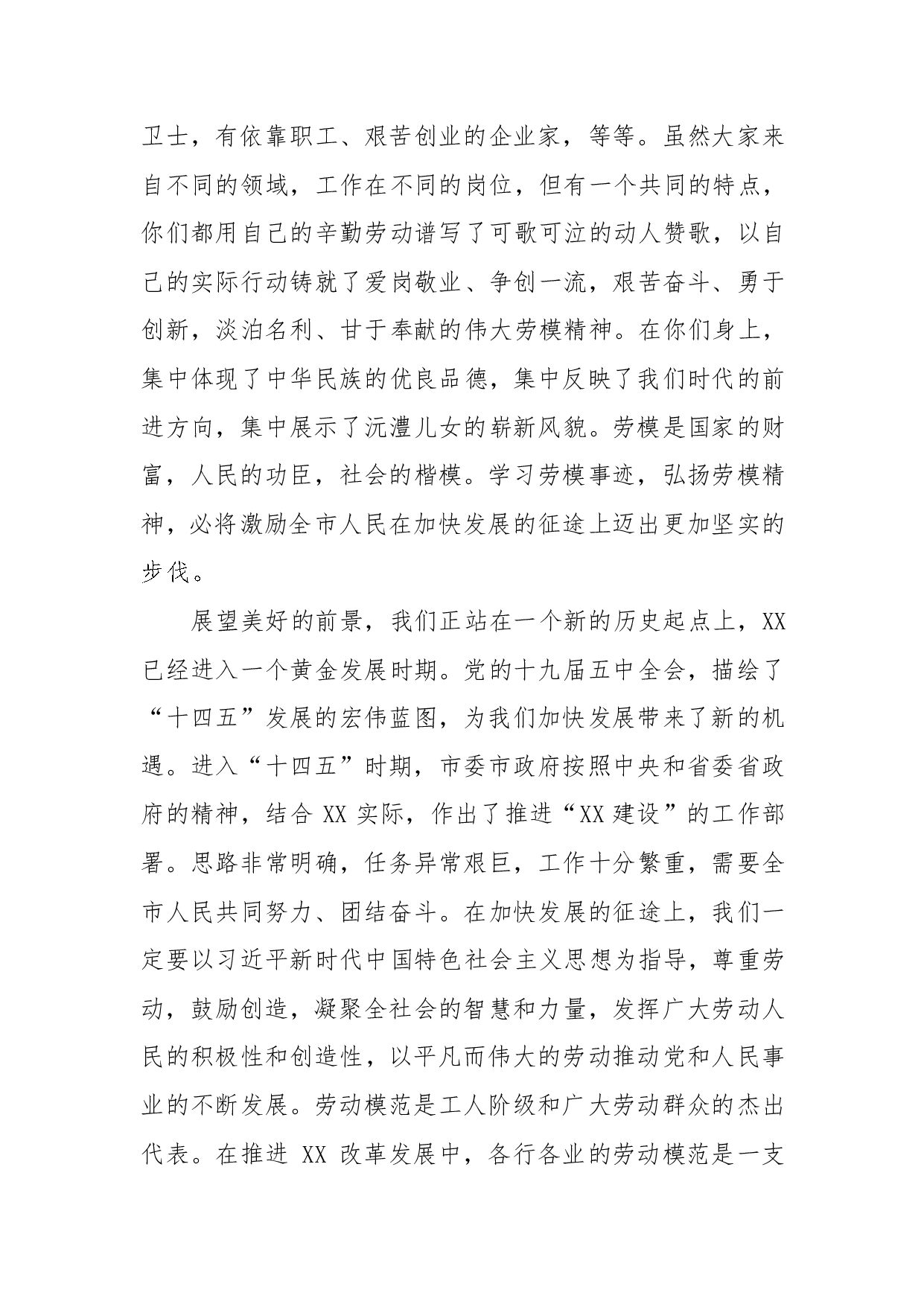 标题:全市五一劳模座谈会上的讲话