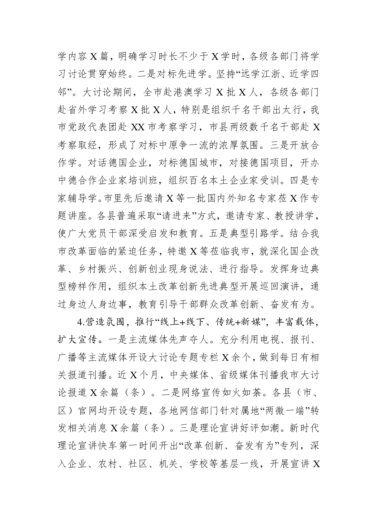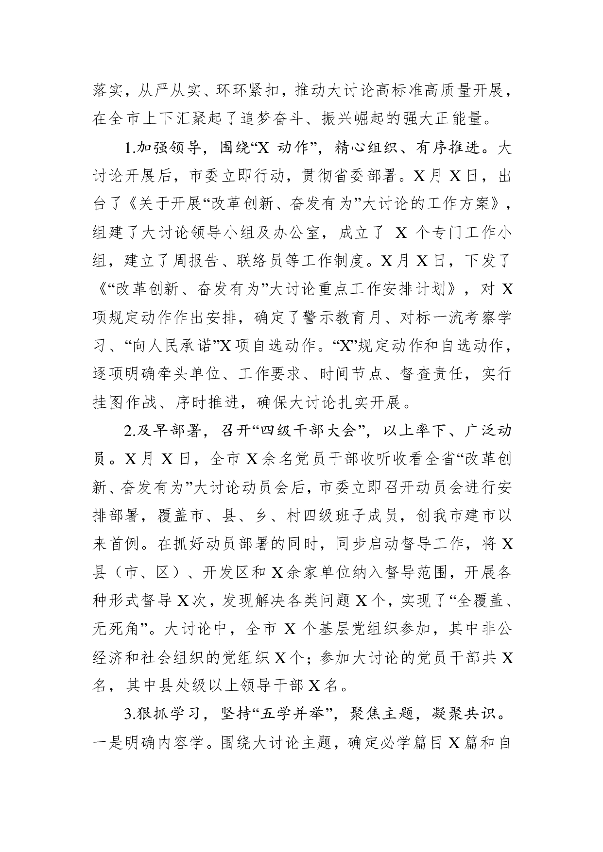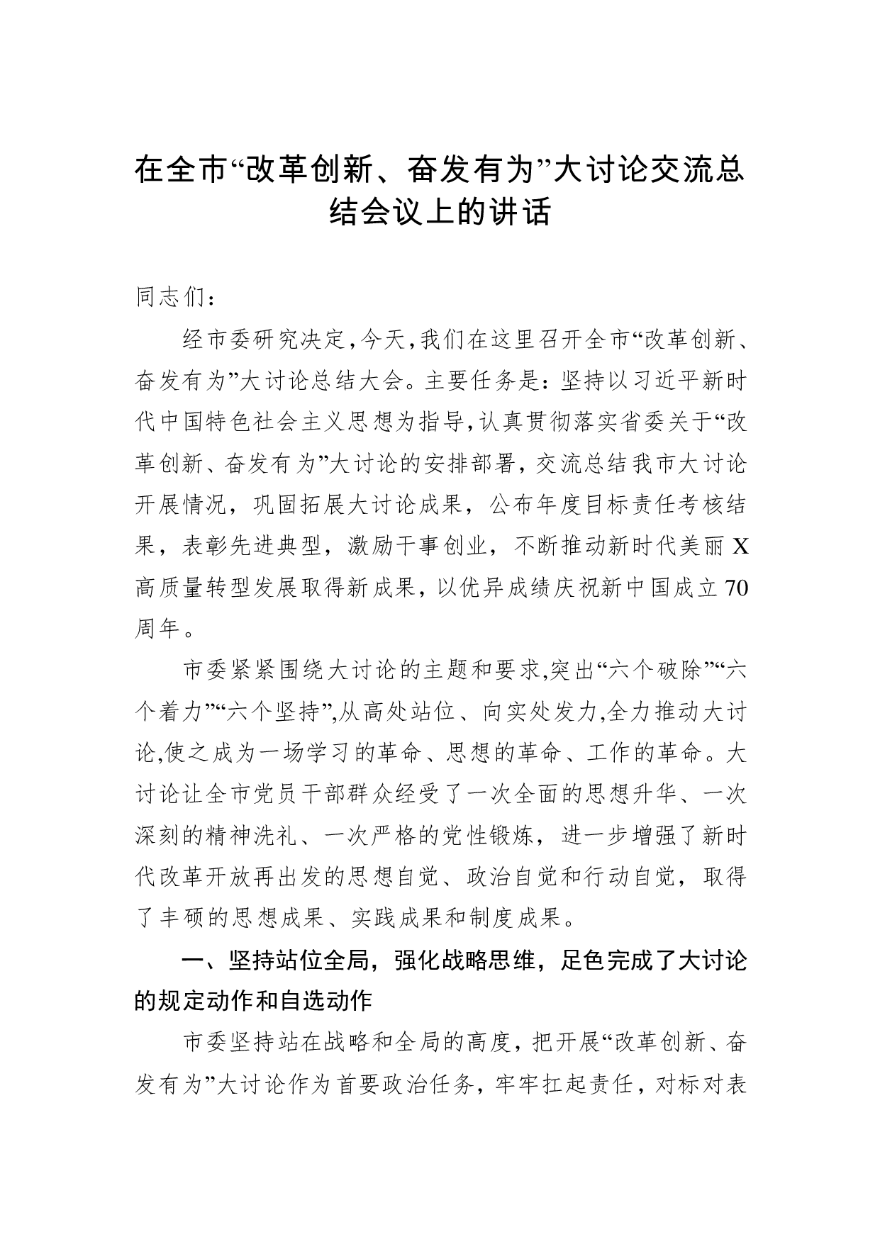 标题:在全市改革创新奋发有为大讨论交流总结会议上的讲话
