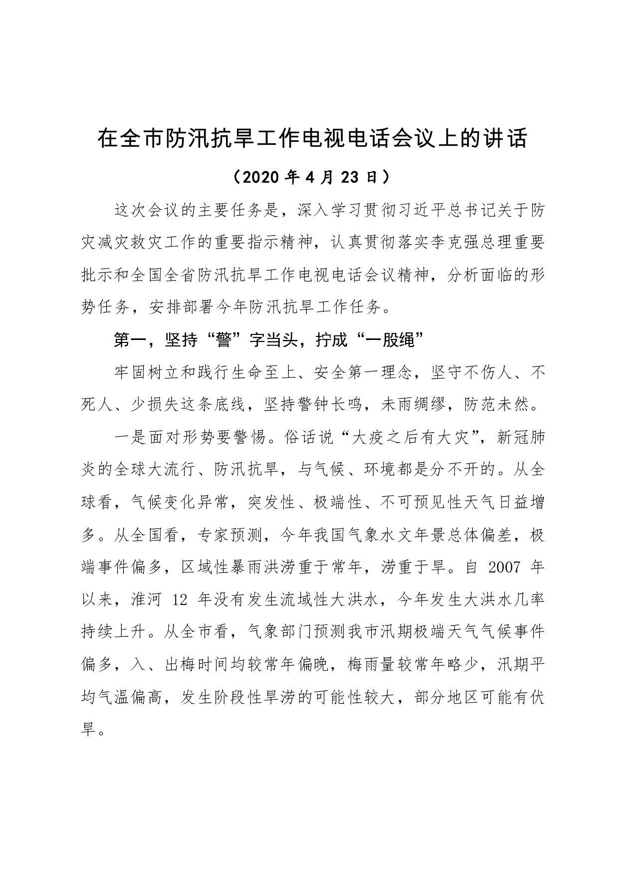 标题:在全市防汛抗旱工作电视电话会议上的讲话