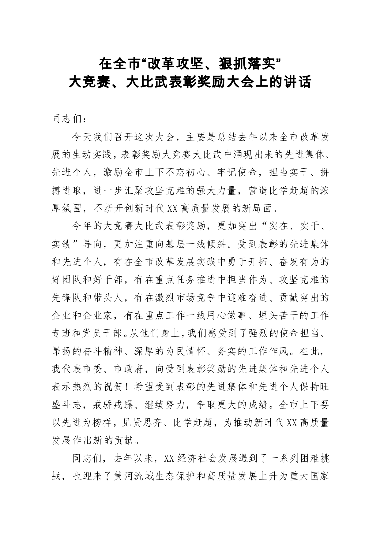 标题:笔友分享在全市改革攻坚狠抓落实大竞赛大比武表彰奖励大会上的讲话