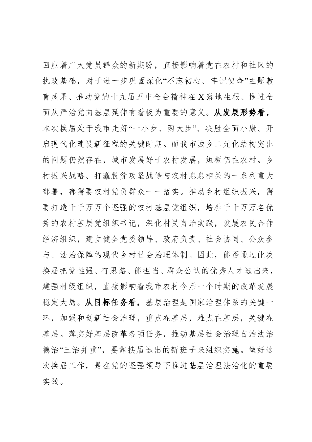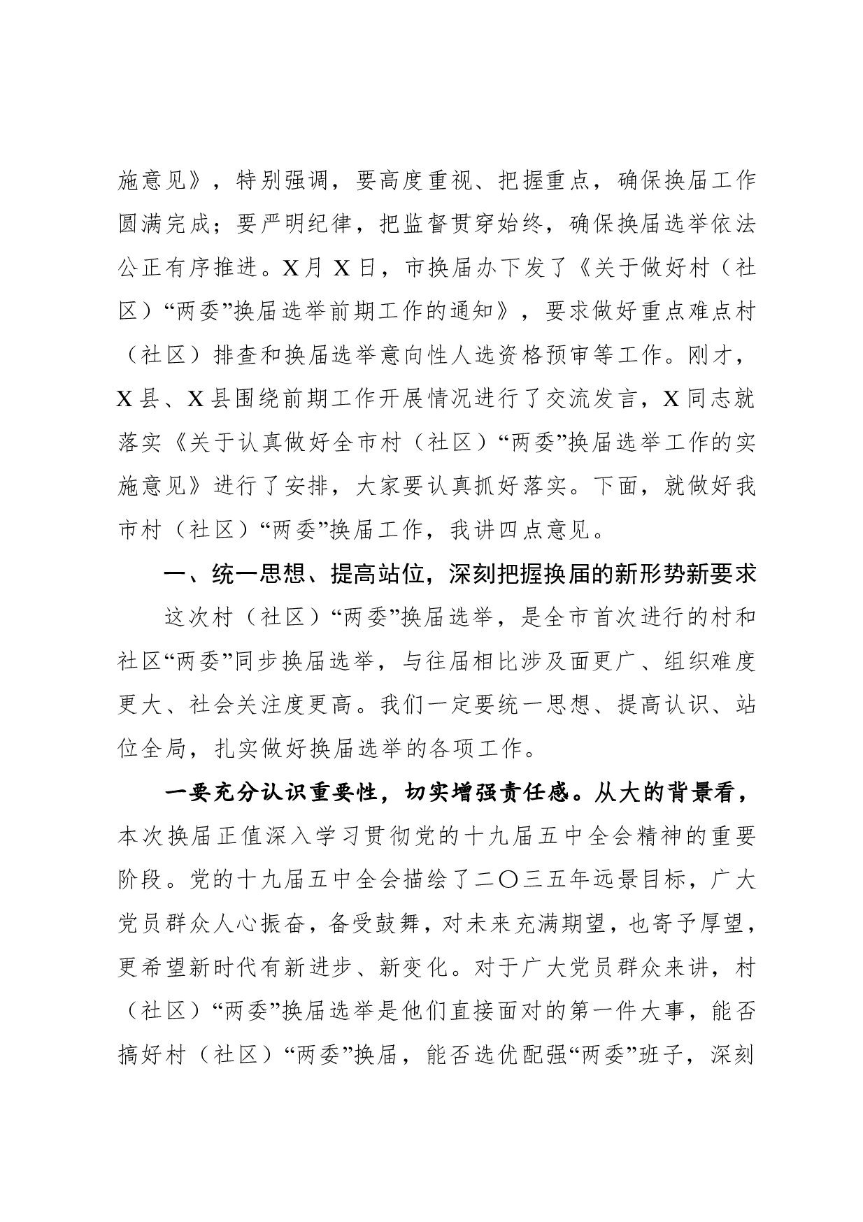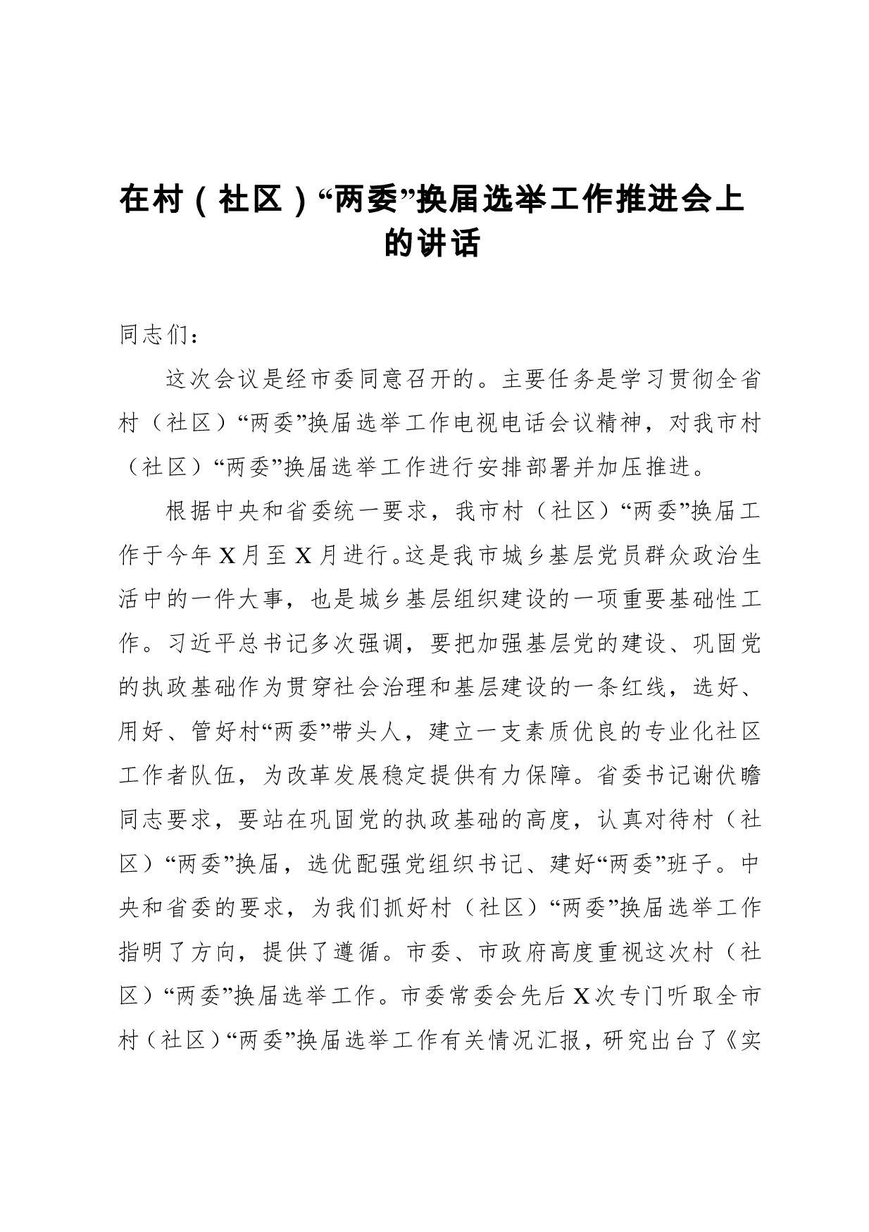 标题:在村社区两委换届选举工作推进会上的讲话