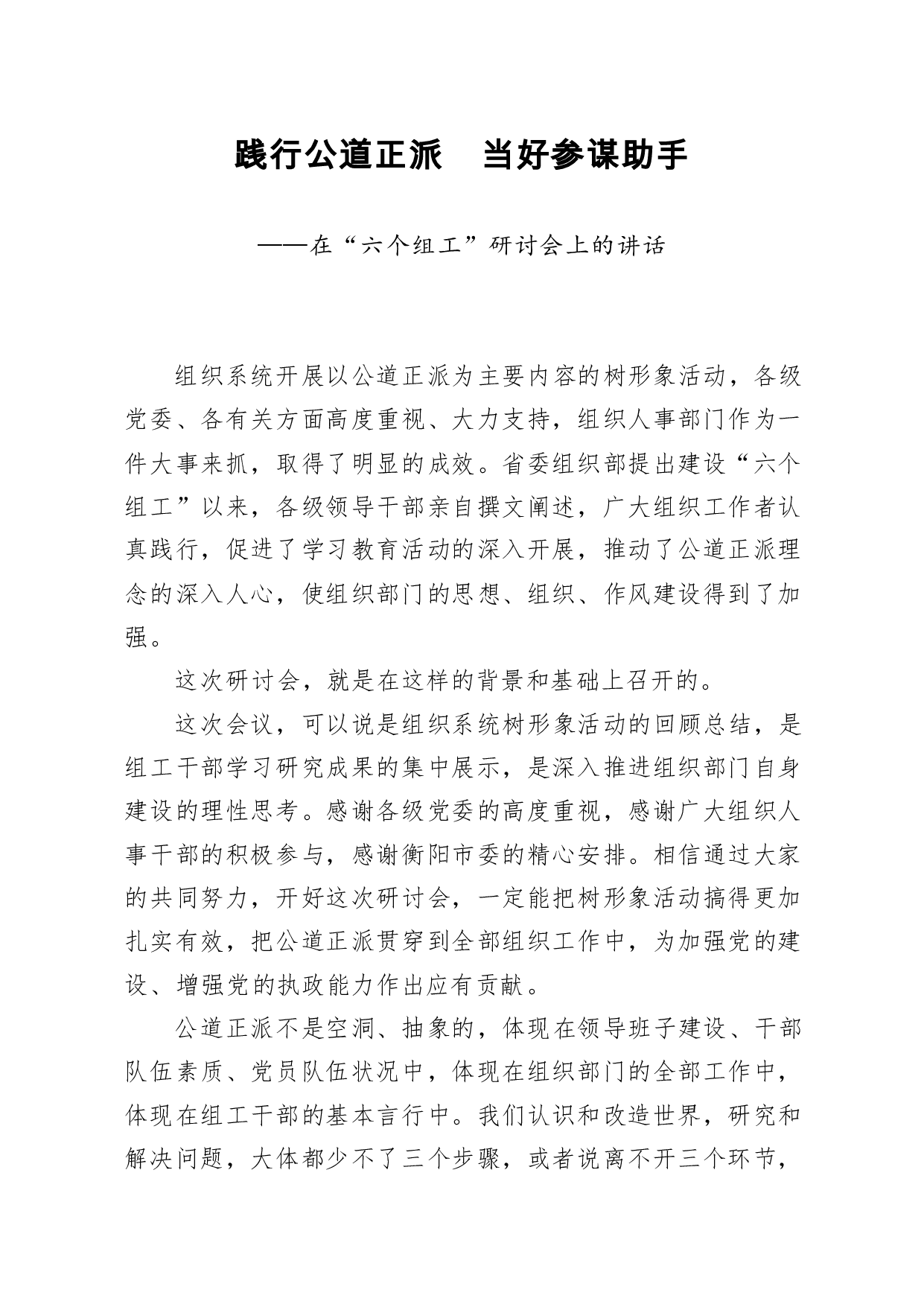标题:笔友分享在六个组工研讨会上的讲话
