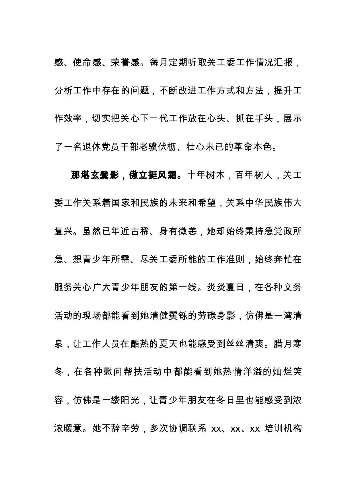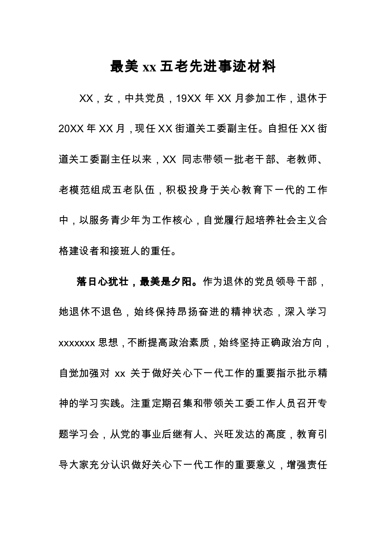 标题:最美xx五老先进材料(关工委)