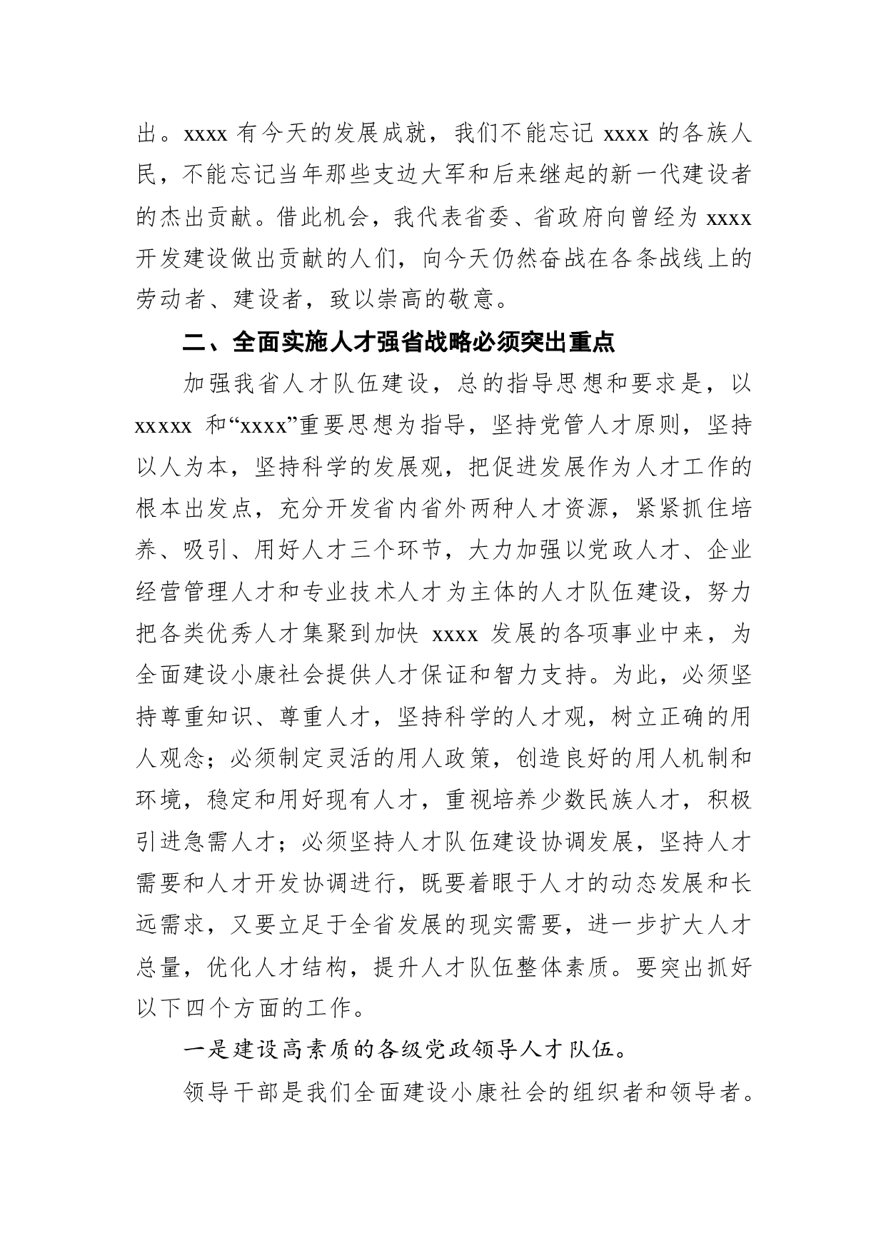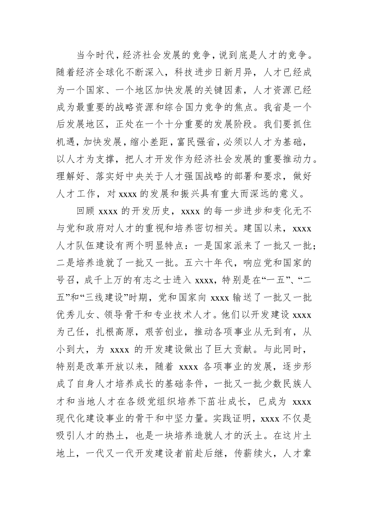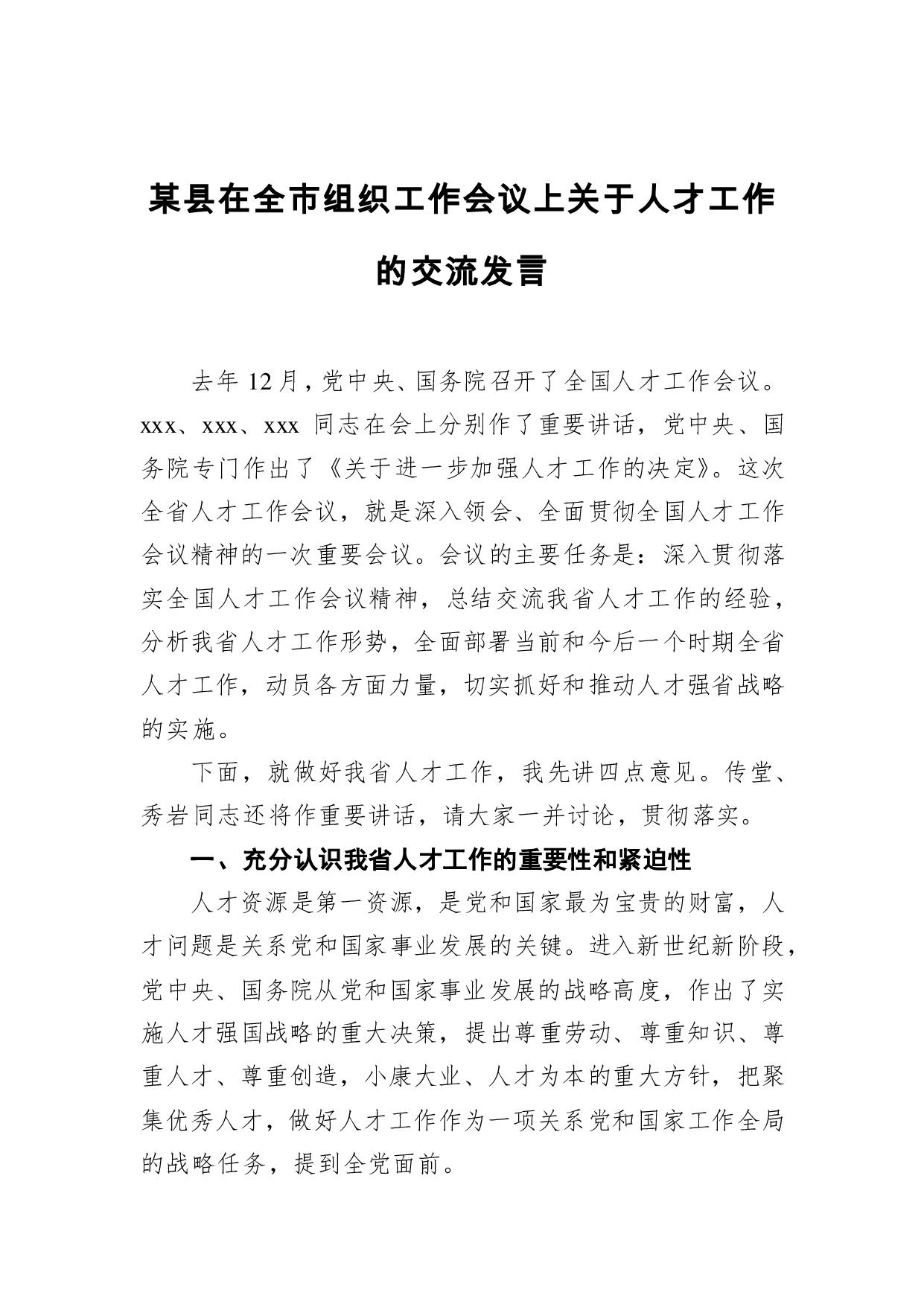 标题:某县在全市组织工作会议上关于人才工作的交流发言