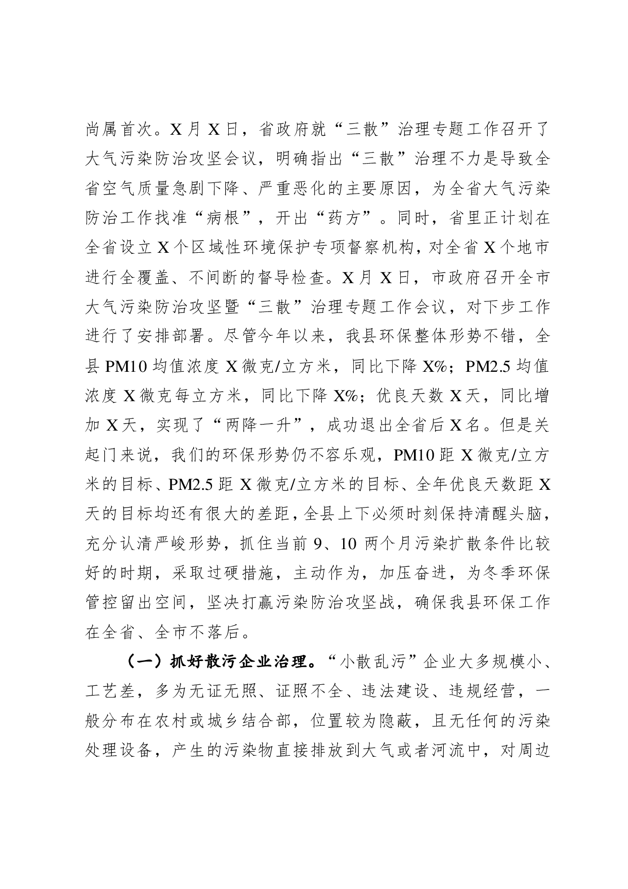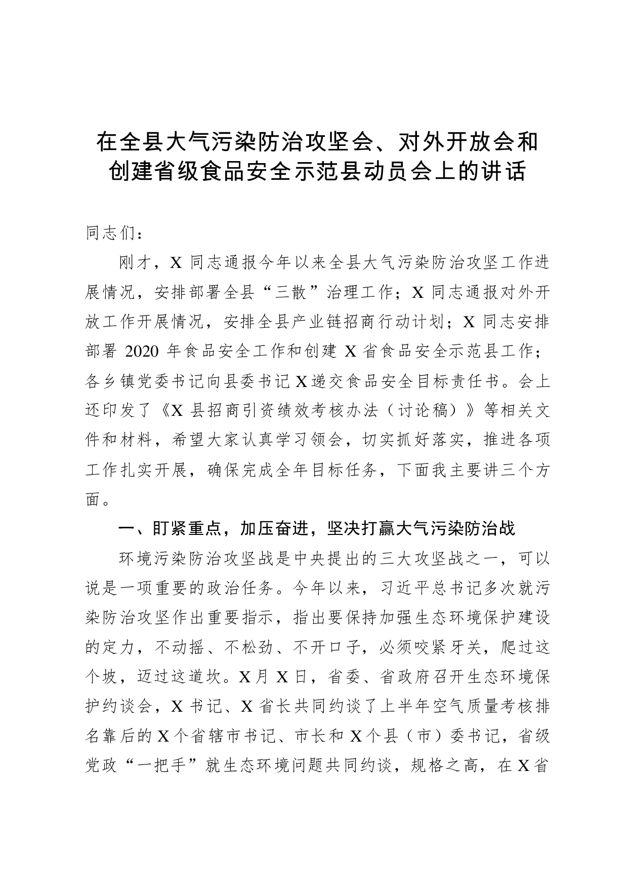 标题:在全县大气污染防治攻坚会 对外开放会和创建省级食品安全示范县动员会上的讲话