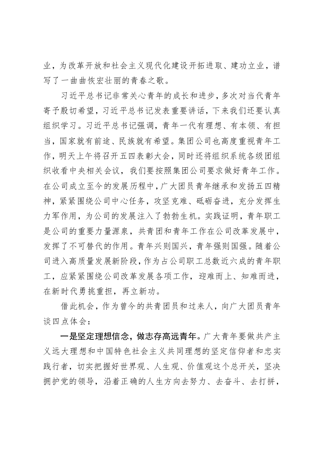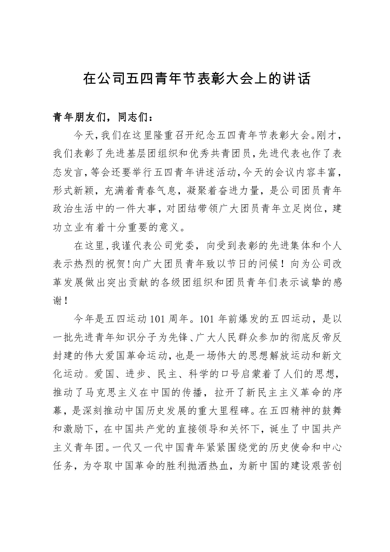 标题:在公司五四青年节表彰大会上的讲话