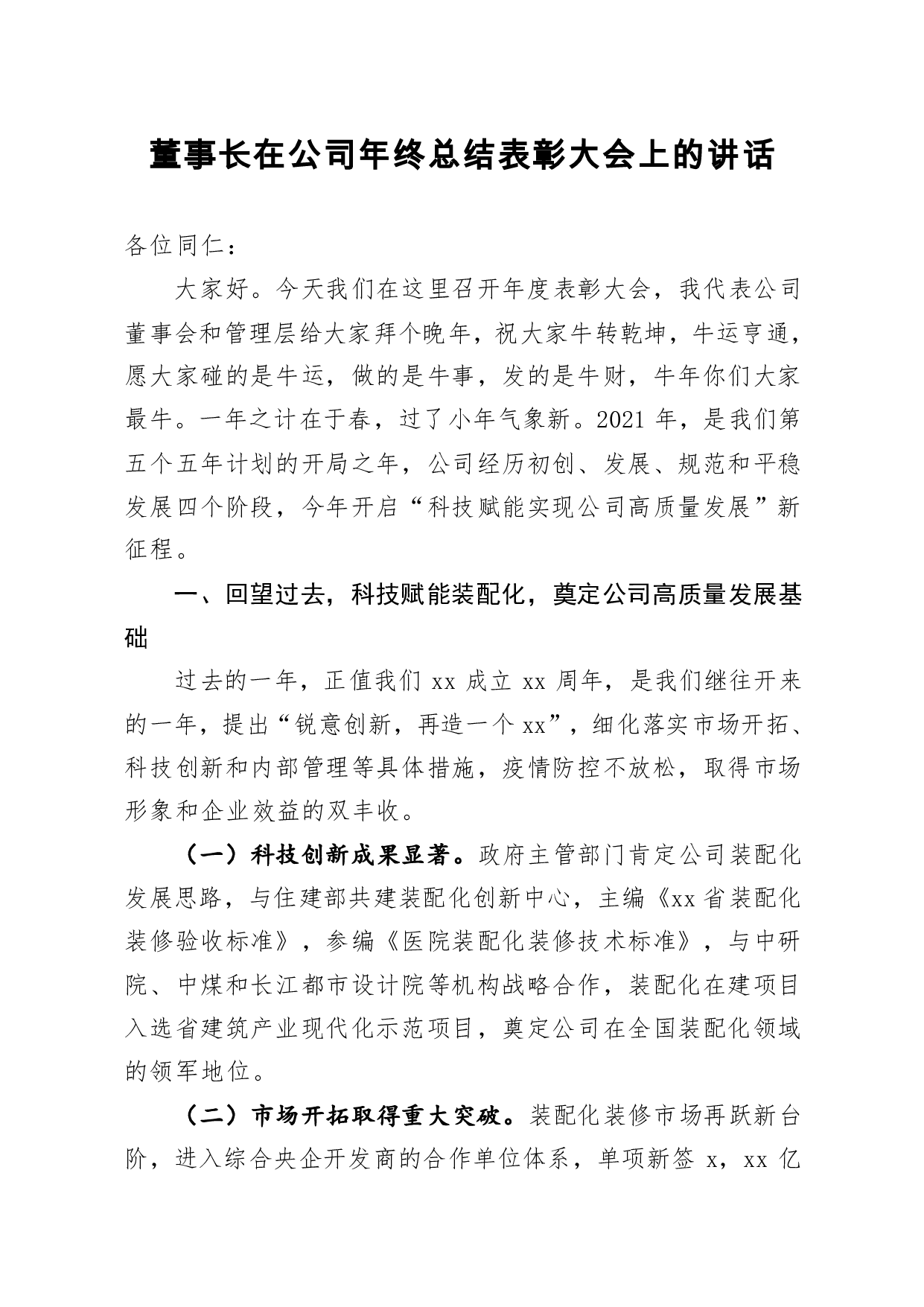 标题:董事长在公司年终总结表彰大会上的讲话集团公司