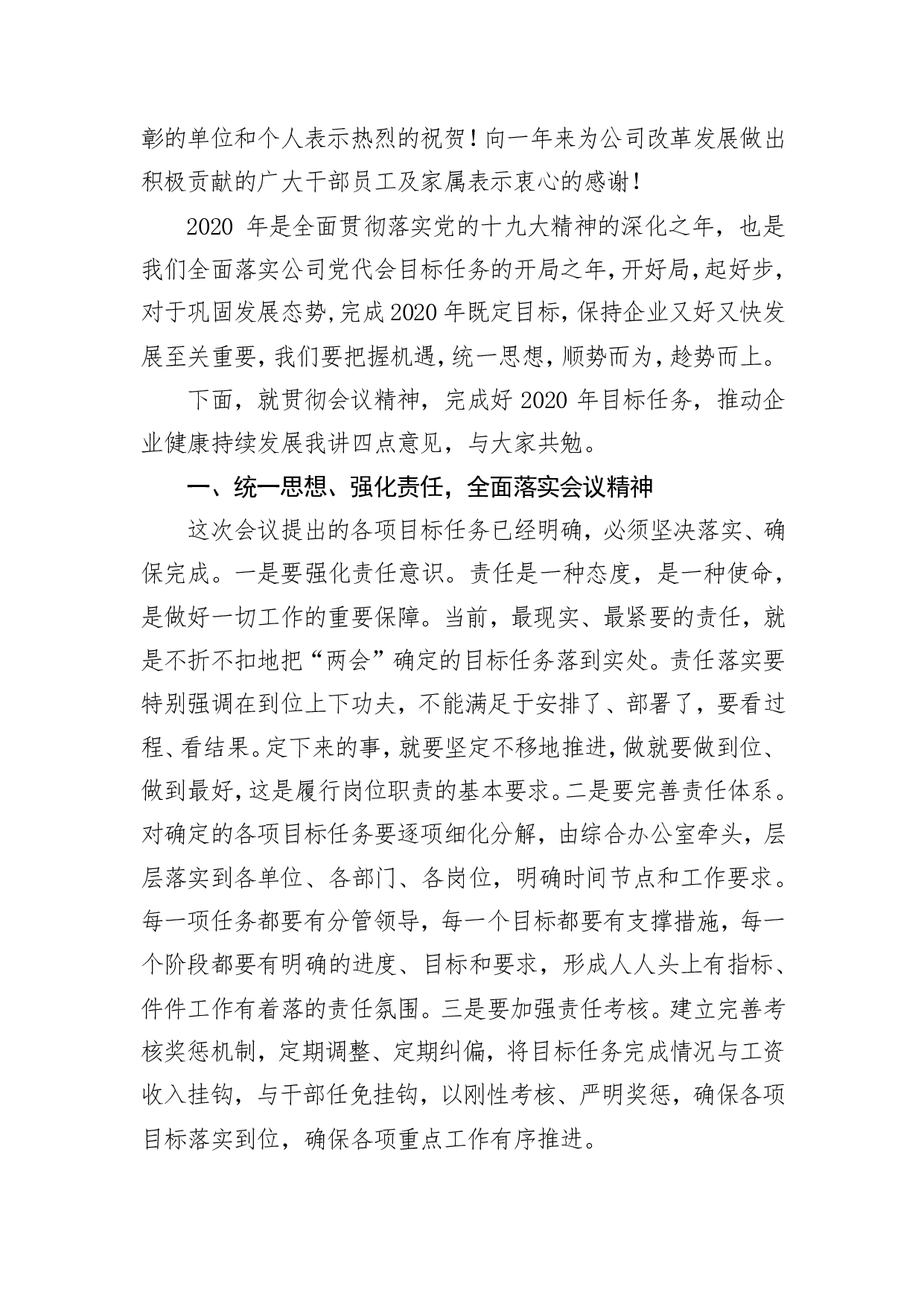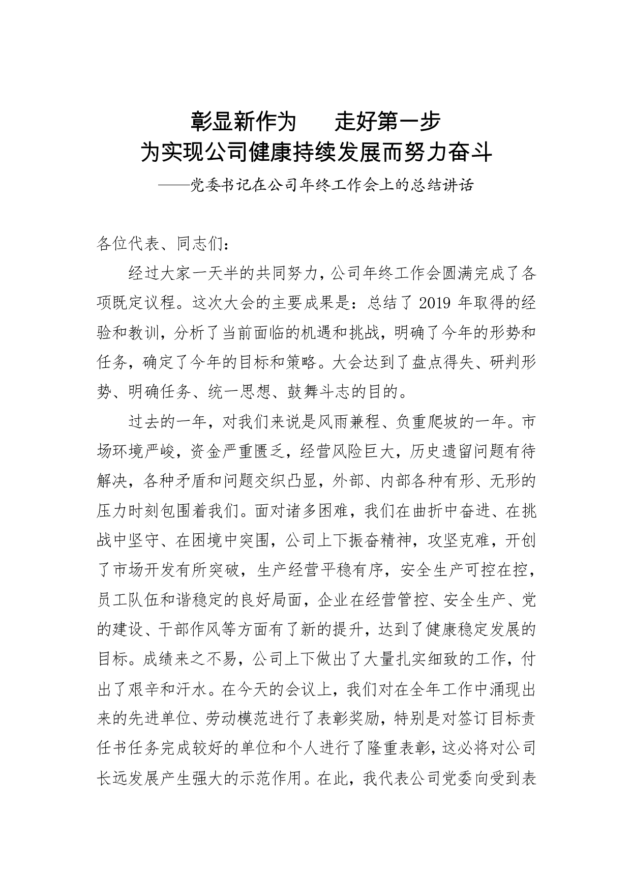 标题:党委书记在2019公司年终工作会上的总结讲话