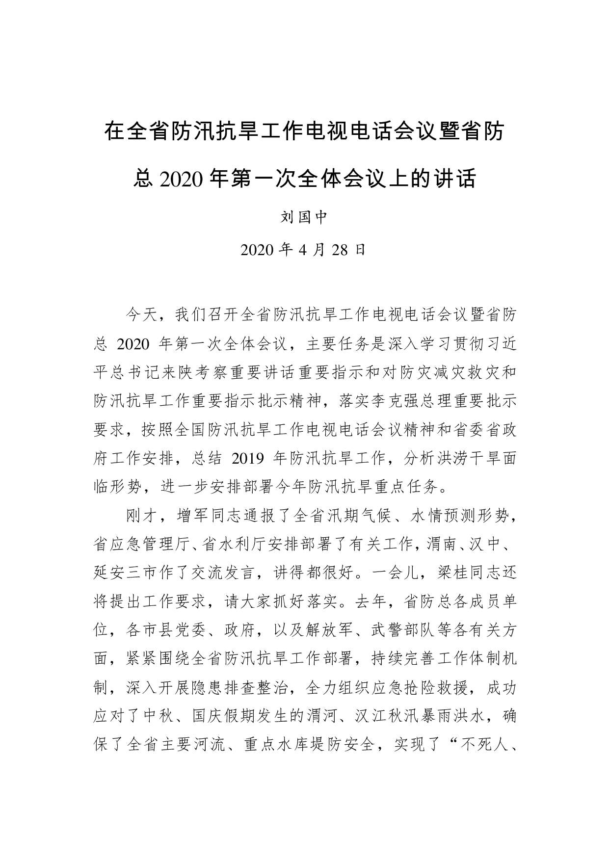 标题:刘国中:在全省防汛抗旱工作电视电话会议暨省防总2020年第一次全体会议上的讲话