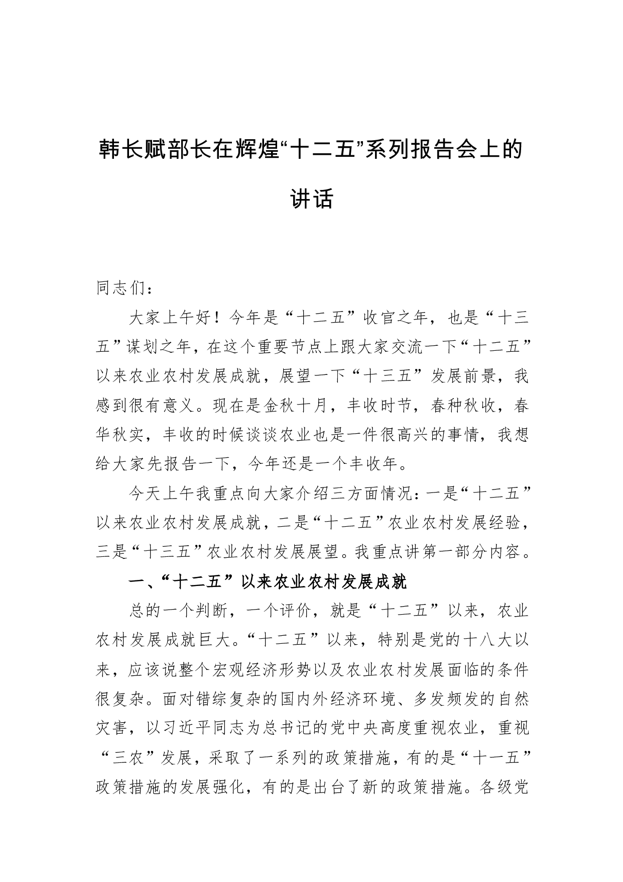 标题:韩长赋部长:在辉煌“十二五”系列报告会上的讲话